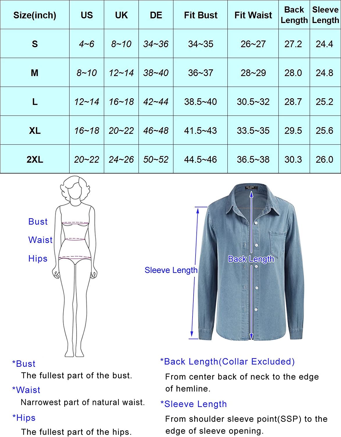 Women's Button Down Jean Shirt Casual Long Sleeve Classic Denim Blouse Jackets Relaxed Fit Chambray Shirt One Pocket