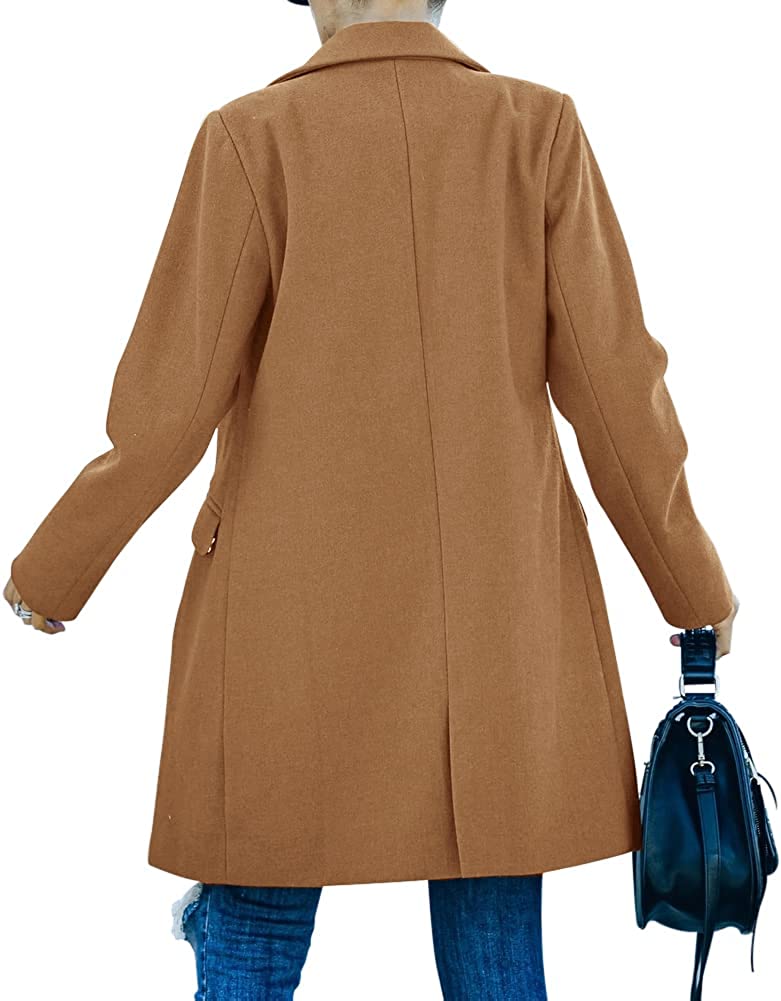Womens Casual Long Sleeve Wool Blend Pea Coat Lapel Notched Collar Warm Midi Jacket Overcoat