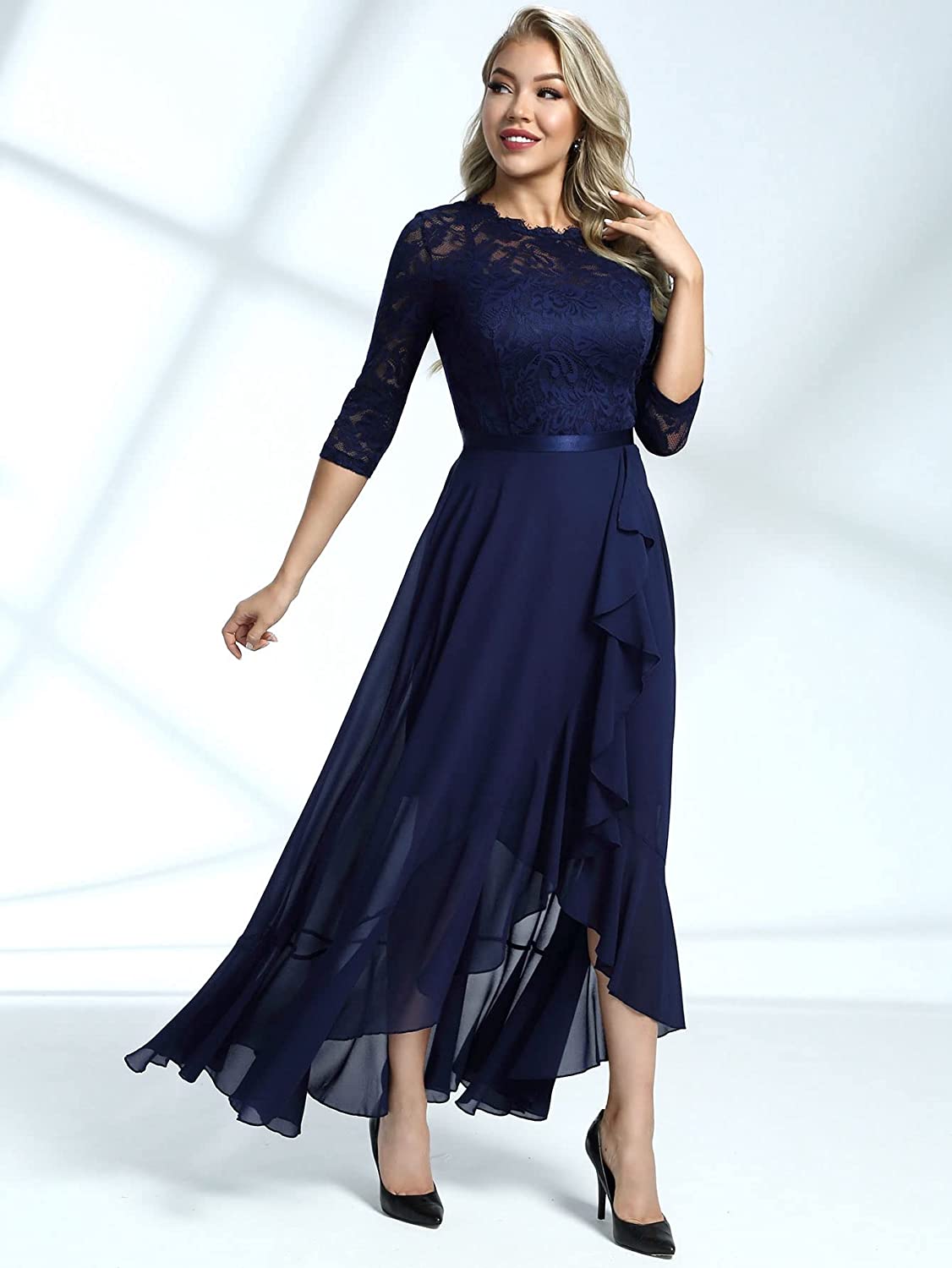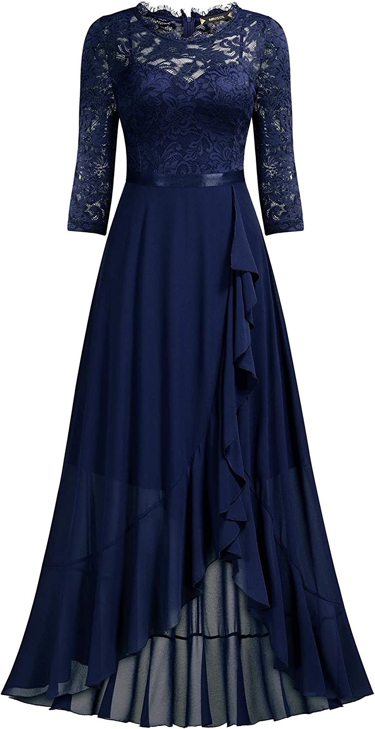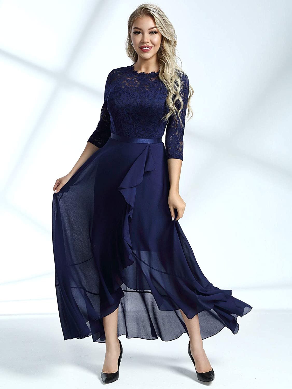 Women's Elegant Floral Lace Ruffle Bridesmaid Maxi Dress