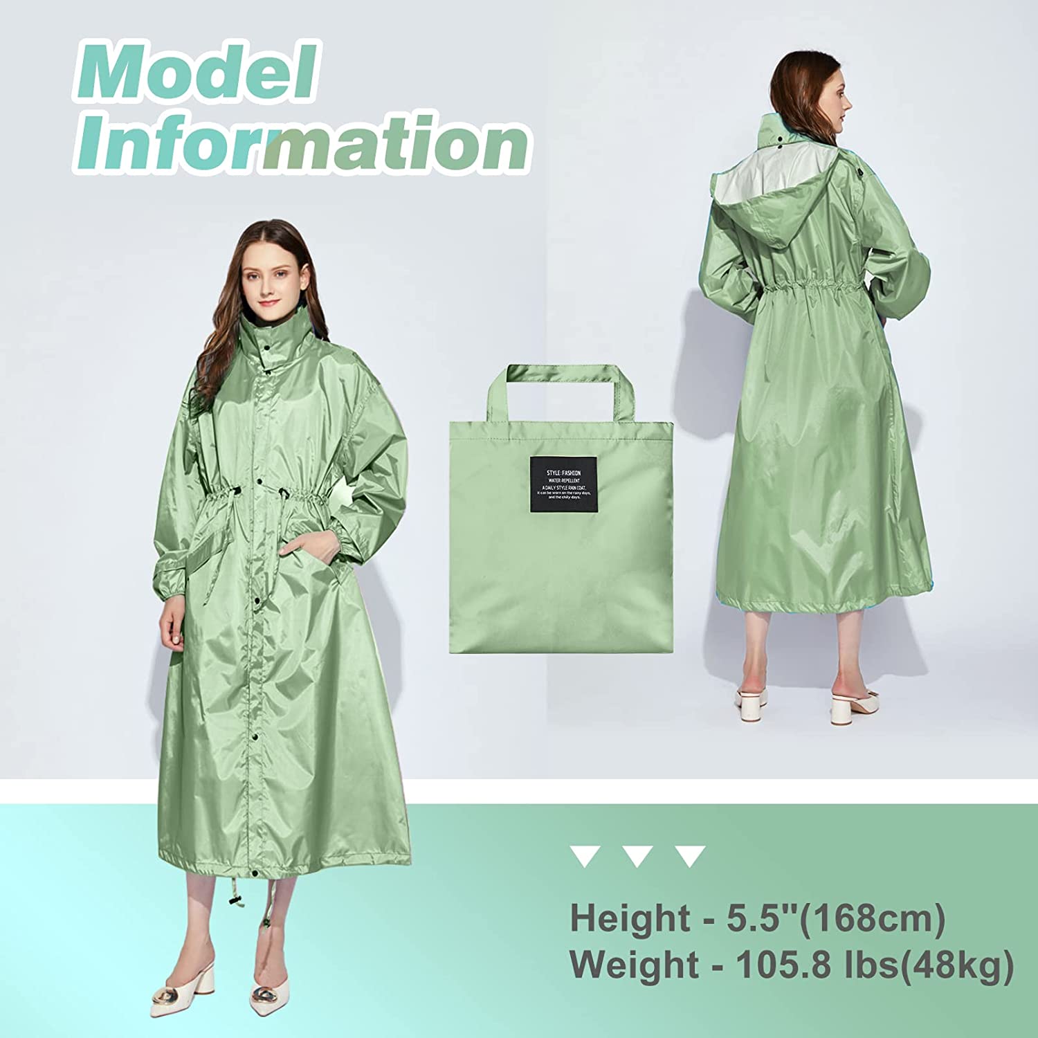 Womens Long Raincoats Rain Jacket Waterproof Packable Outdoor Hooded Windbreaker Lightweight Adjustable Waist for Outdoors