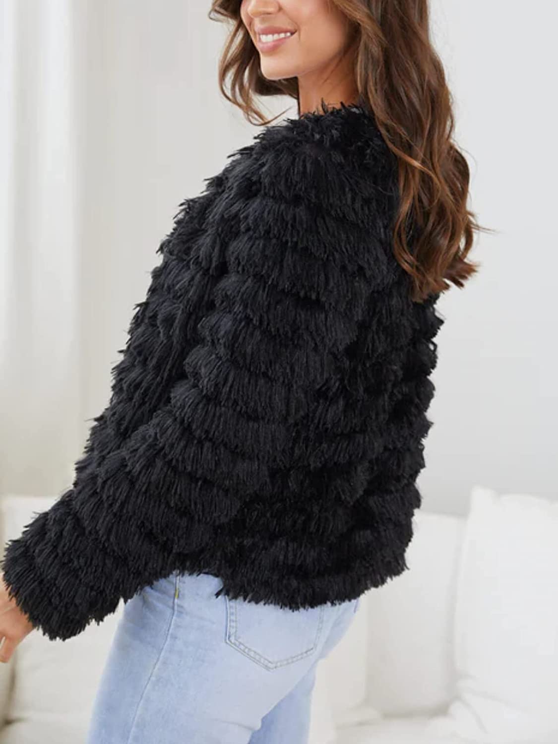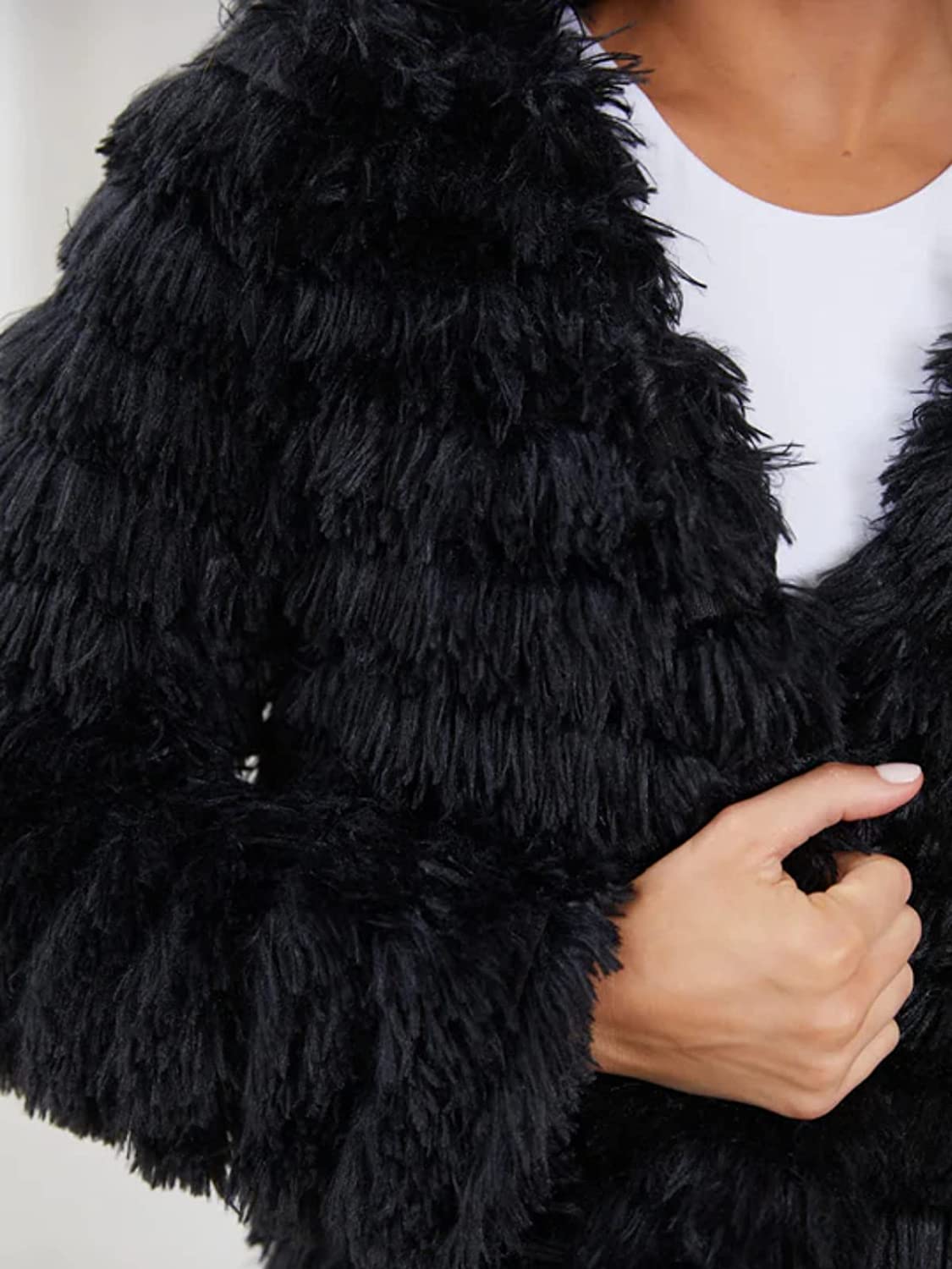 Womens Open Front Faux Fur Cardigan Vintage Parka Shaggy Jacket Coat