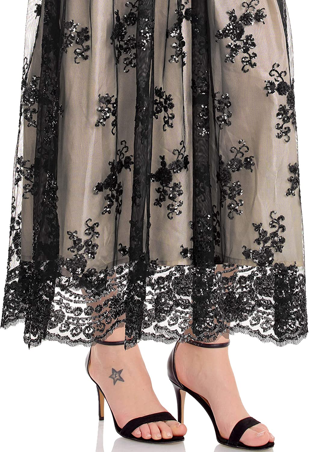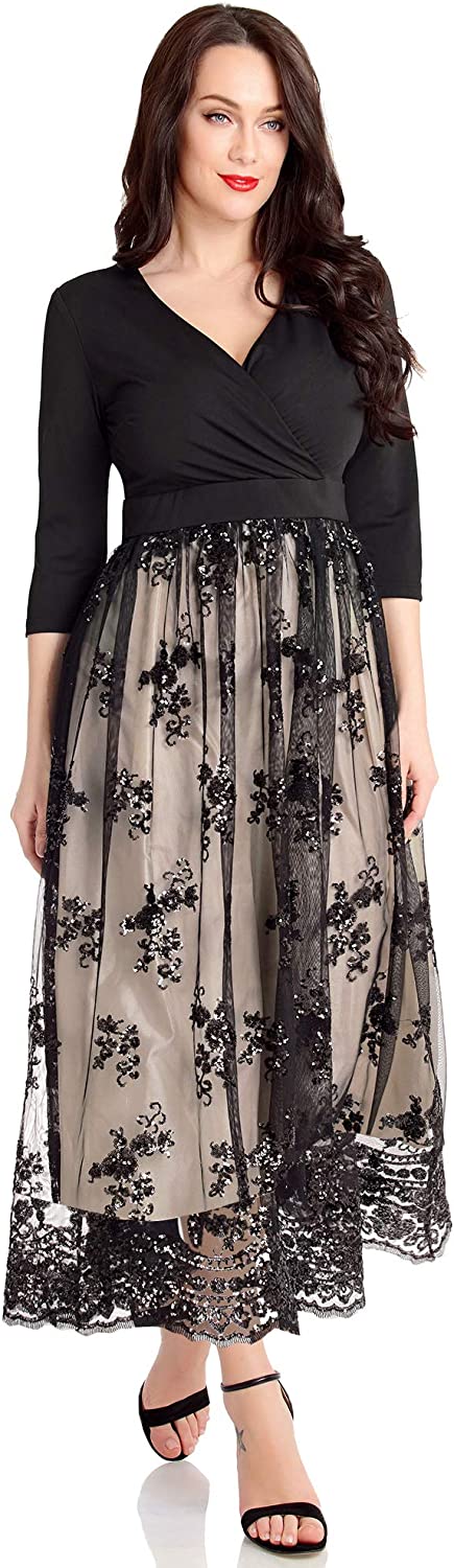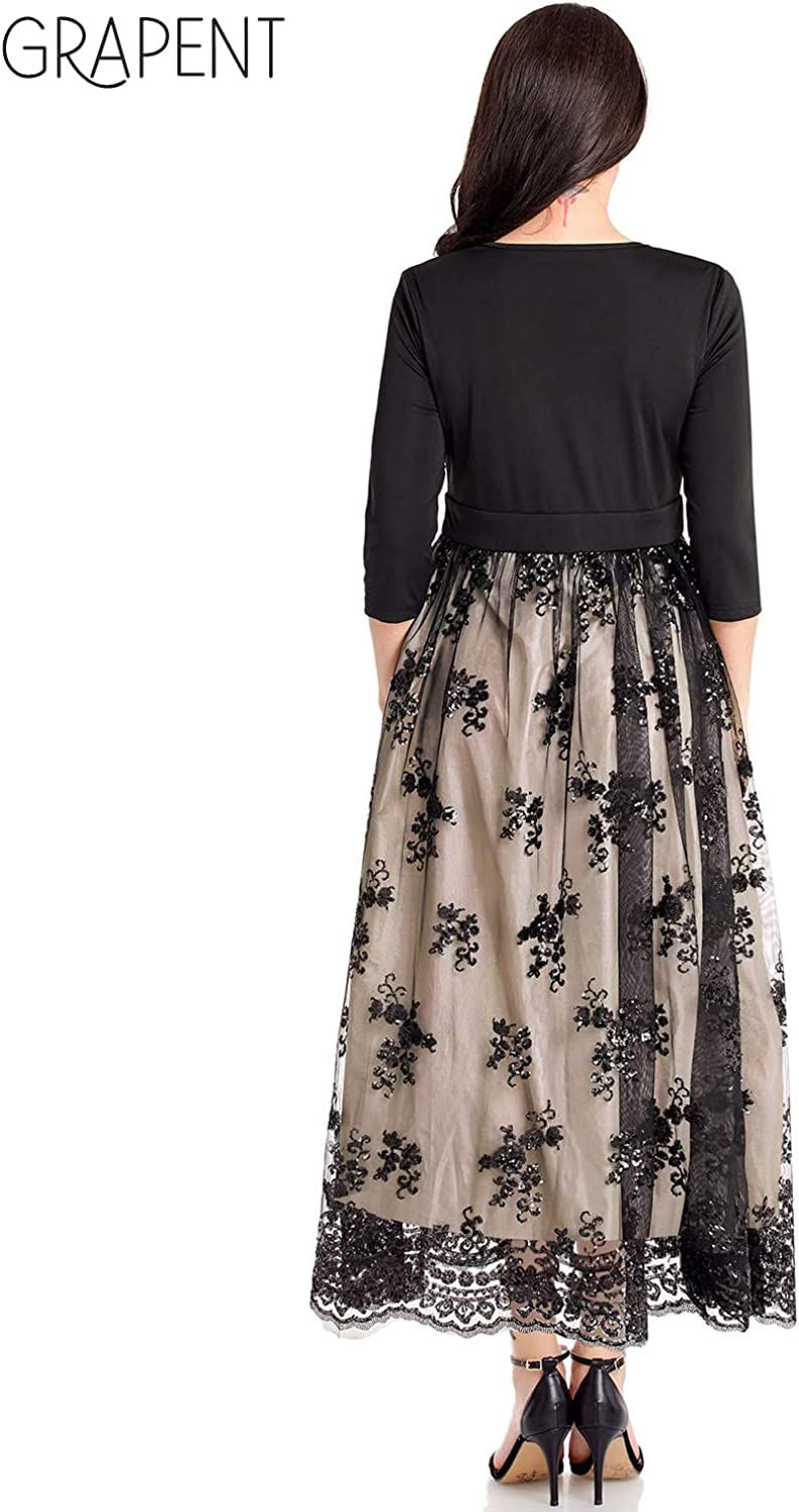 Women's Plus Size Sequin 3/4 Sleeves Evening Gown Party Long Maxi Dress