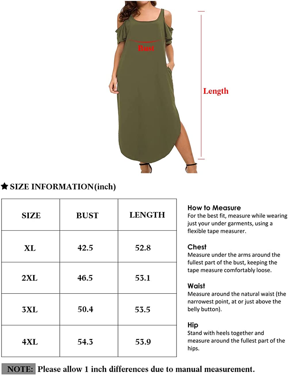Women's Plus Size Summer Maxi Dresses Short Sleeve Casual Loose Plain Floral Print Split Long Dress with Pockets