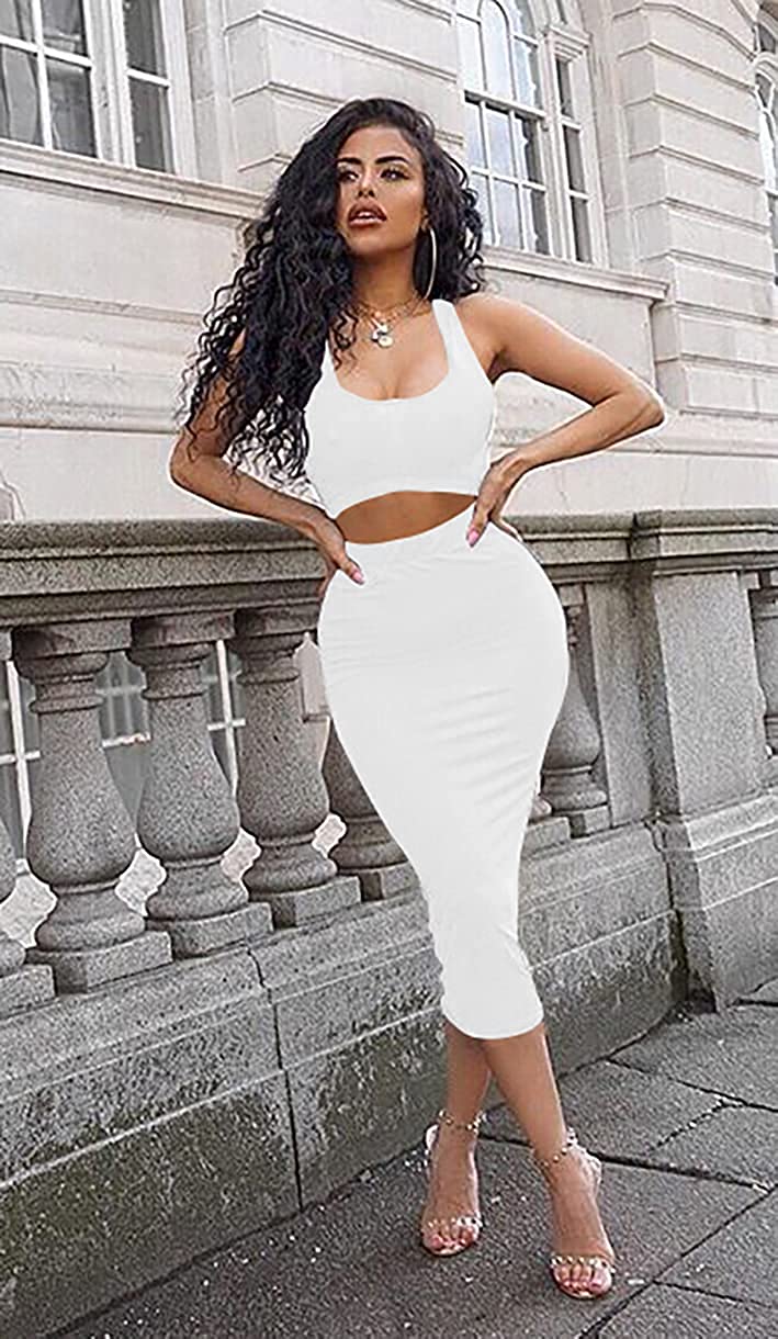 Women's Sexy Summer Outfits Bodycon Tank Top Midi Skirt 2 Piece Dress