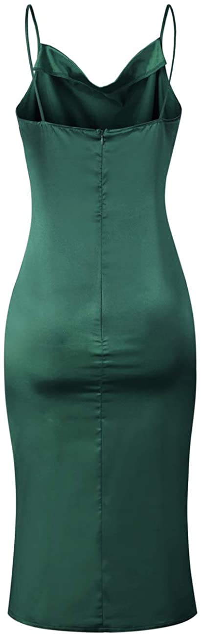 Women's Sleeveless Spaghetti Strap Satin Dress Cocktail Beach Evening Party Cowl Neck Dot Leopard Midi Dresses