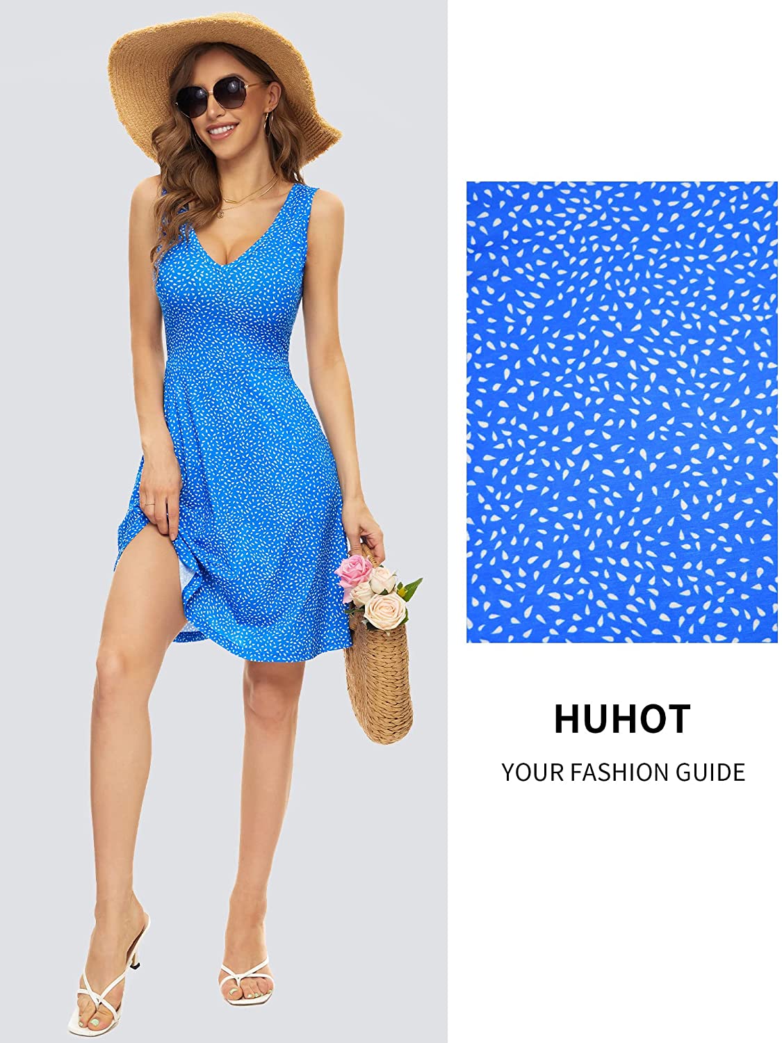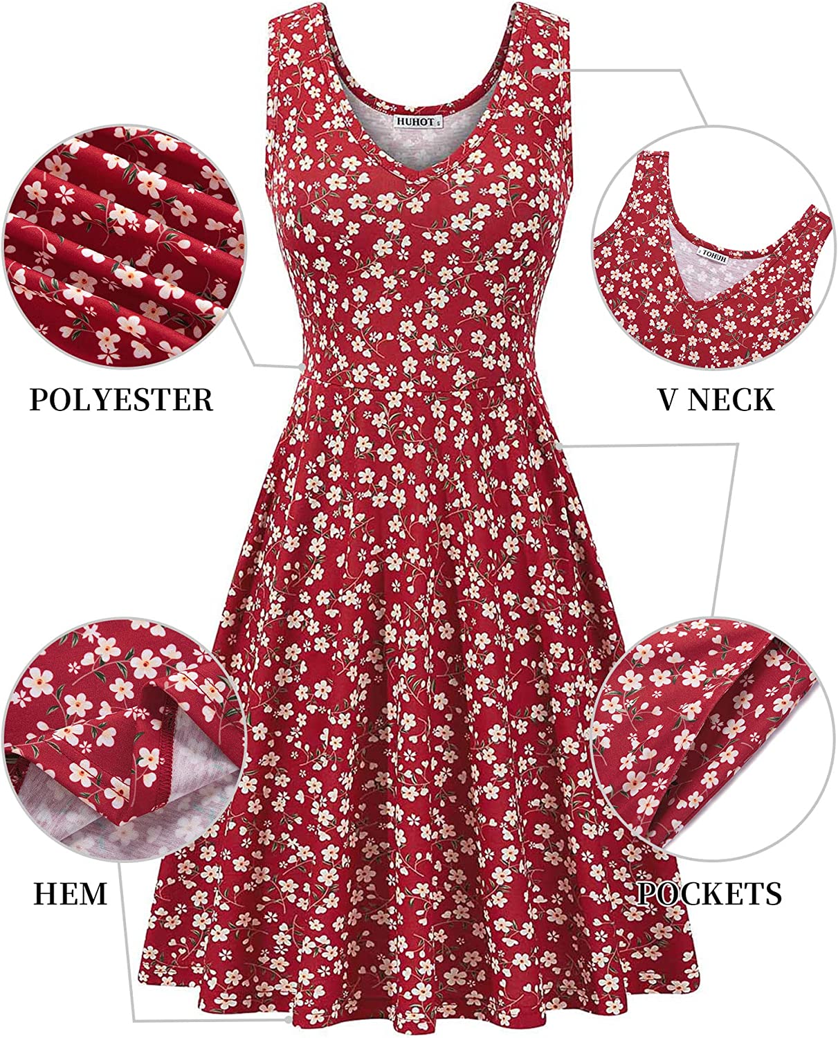 Womens Sleeveless V Neck Dress with Pocket Summer Beach Midi Flared Tank Dress
