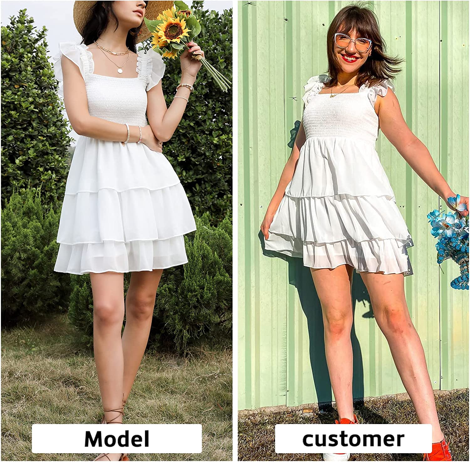 Womens Square Neck Sleeveless Ruffle Dress High Waist Backless Tiered Smocked Strappy Casual Short Mini Dresses