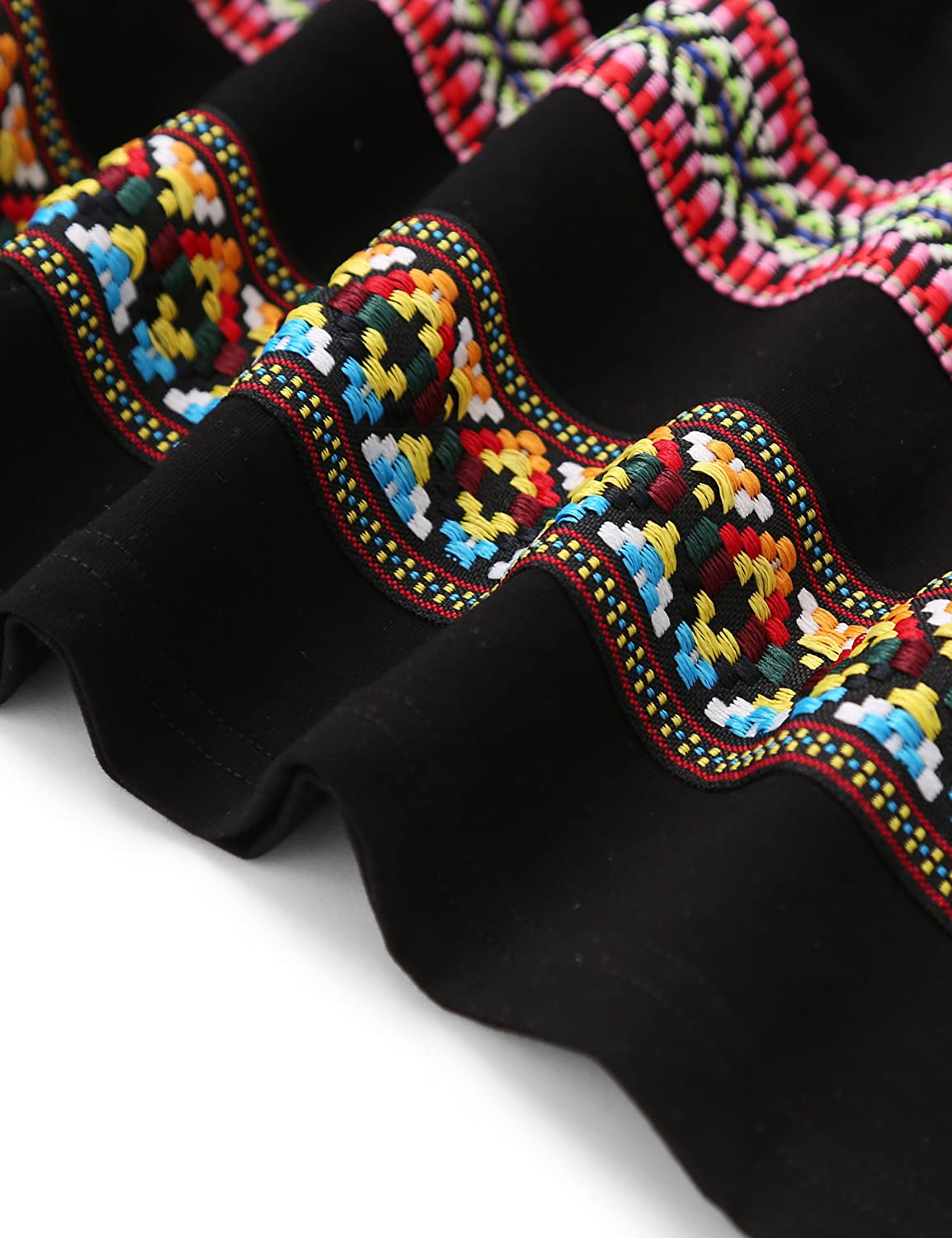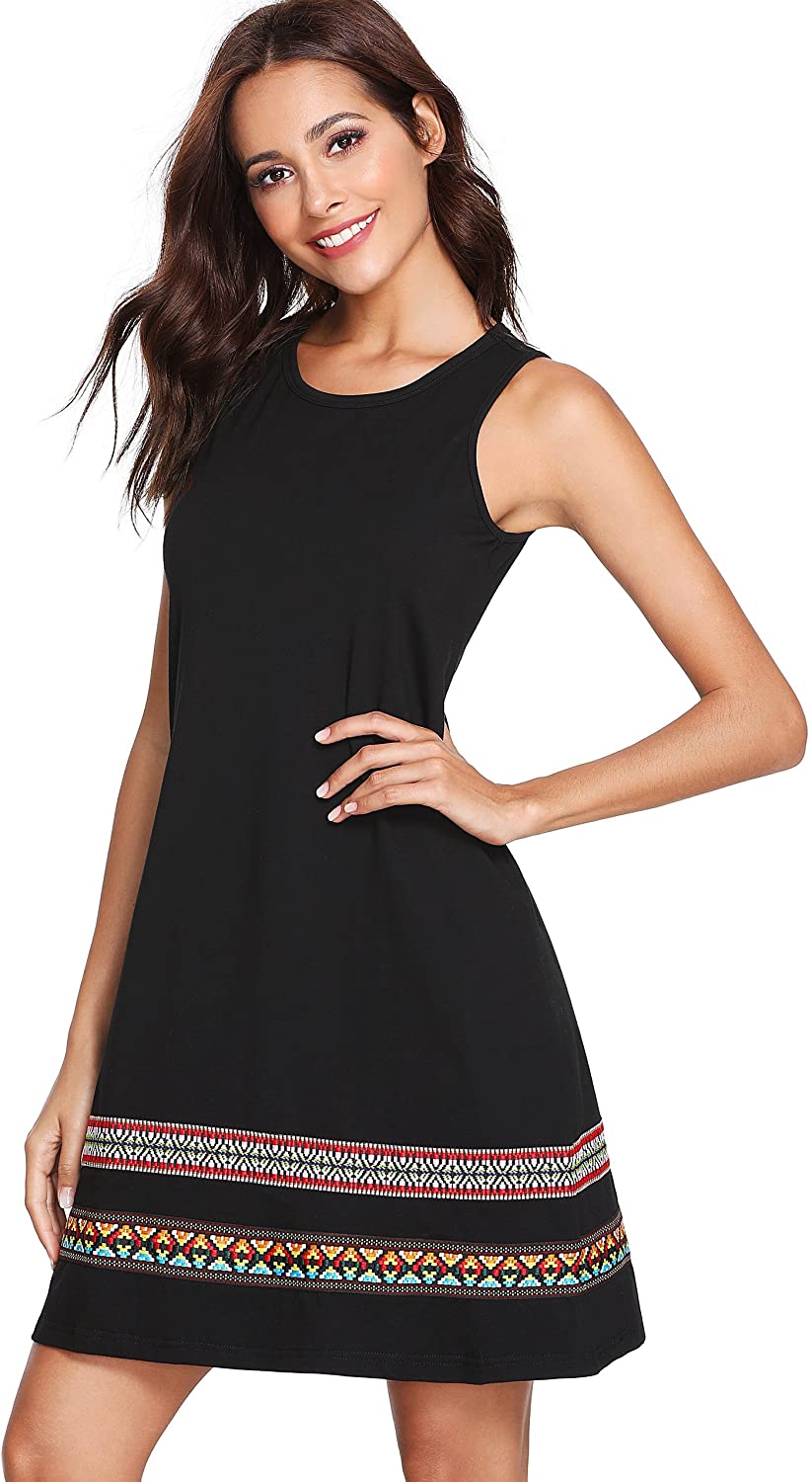 Women's Summer Boho Sleeveless Embroidered Hem Loose Casual Tank Dress