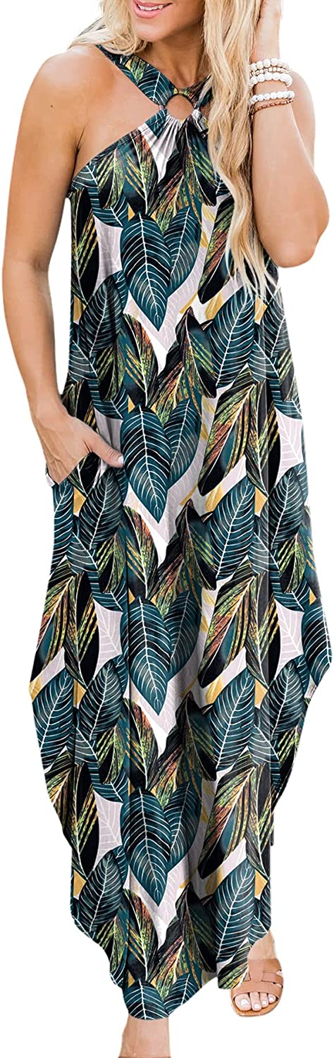 Women's Summer Casual Criss Cross Sundress Sleeveless Split Maxi Long Beach Dress with Pockets