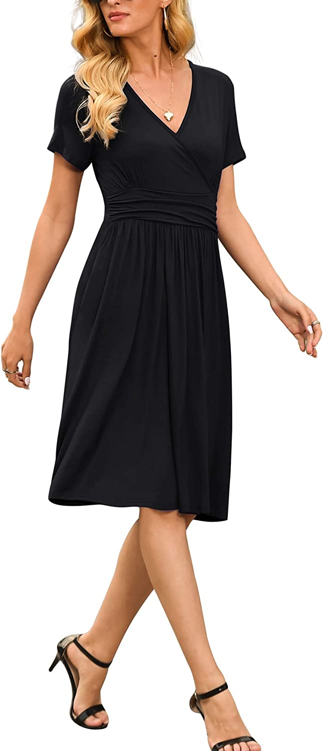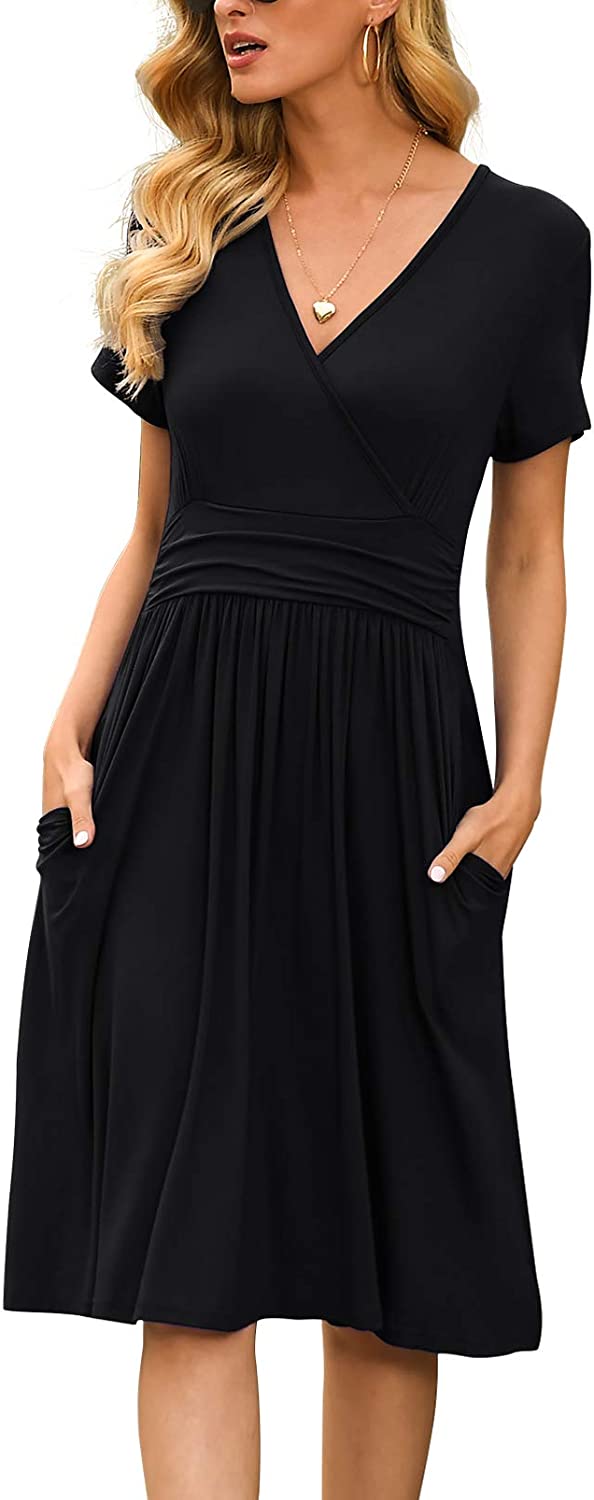 Women's Summer Casual Short Sleeve V-Neck Short Party Dress with Pockets