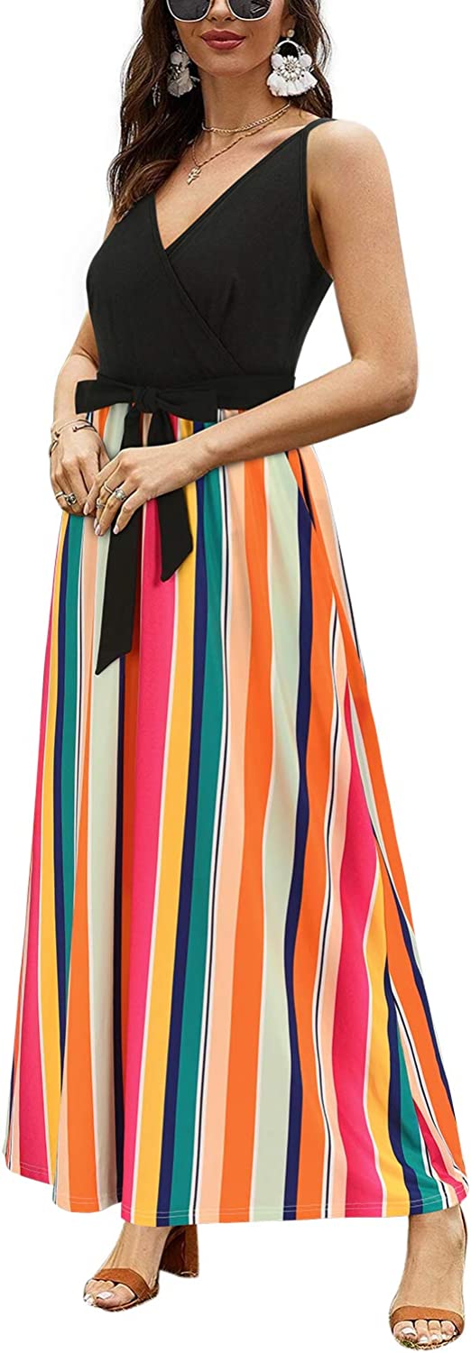 Womens Summer Deep V Neck Floral Adjustable Spaghetti Strap Beach Maxi Dress