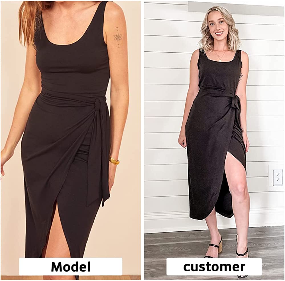 Women's Summer Sleeveless Solid Split Front Bodycon Midi Tank Dress with Belt