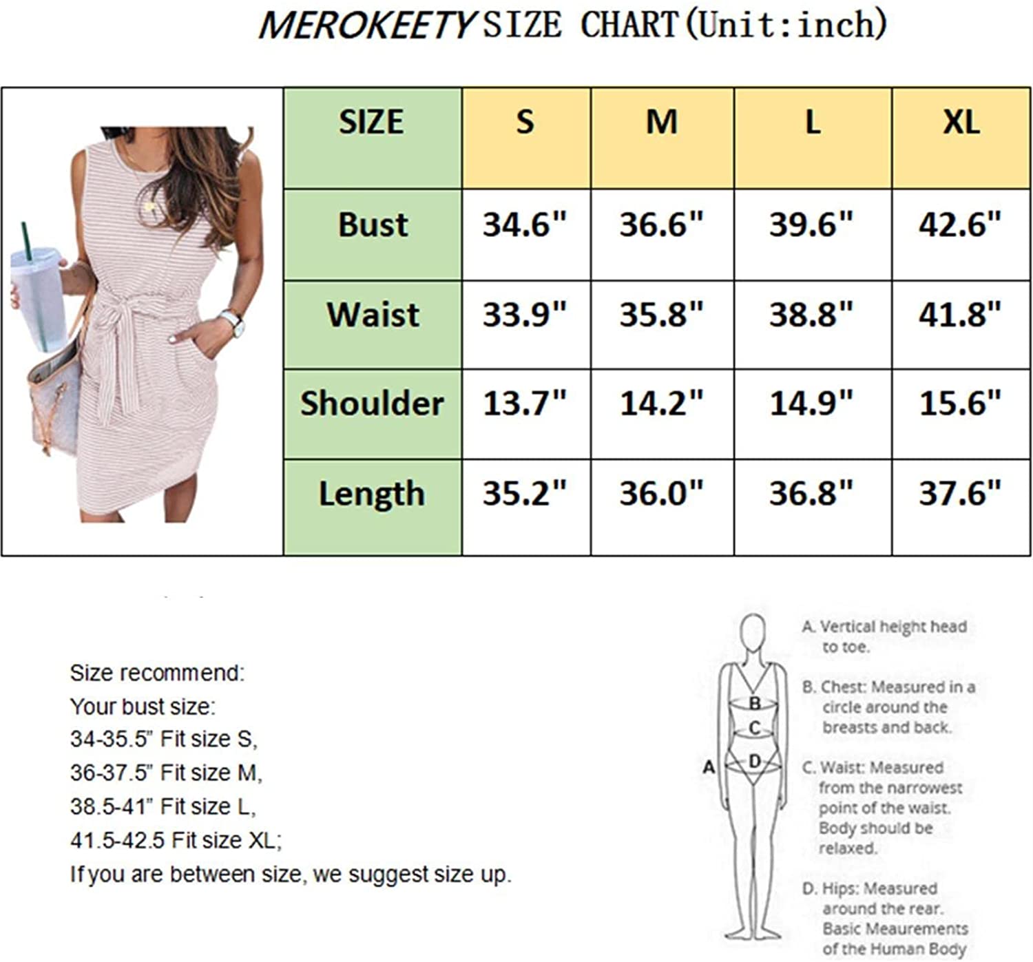 Womens Summer Sleeveless Striped T Shirt Dress Casual Crew Neck Tie Waist Mini Dresses