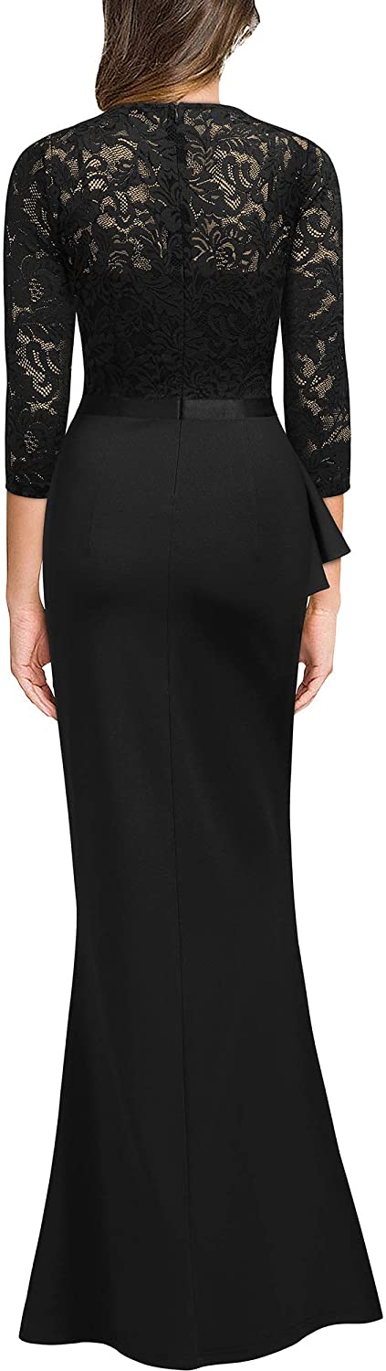 Women's Vintage Floral Lace Ruffle Half Sleeve Evening Party Formal Long Dress