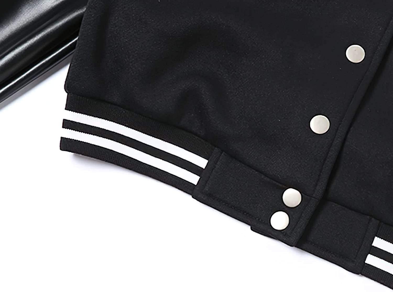 XASPEE Women's Casual Baseball Jacket Faux Leather Colorblock Button Crop Bomber Jacket