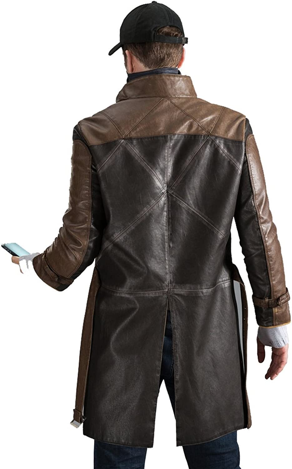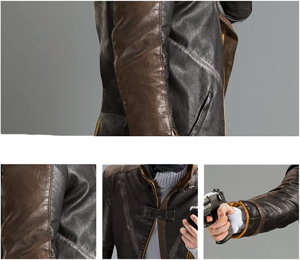 Xfang Men's Brown Leather Trench Coat Distressed Vintage Gothic Cosplay Jacket