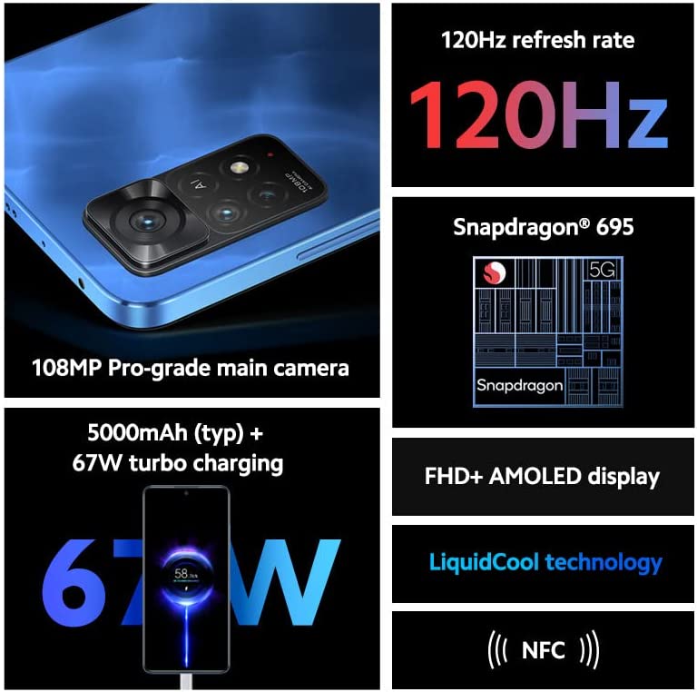 Xiaomi Redmi Note 11 Pro 5G + 4G Volte 128GB + 8GB Factory Unlocked 6.67" 108MP Camera Night Mode (Not Verizon Sprint Boost Cricket Metro At&T) + Extra (w/Fast Car Charger Bundle) (Graphite Gray)