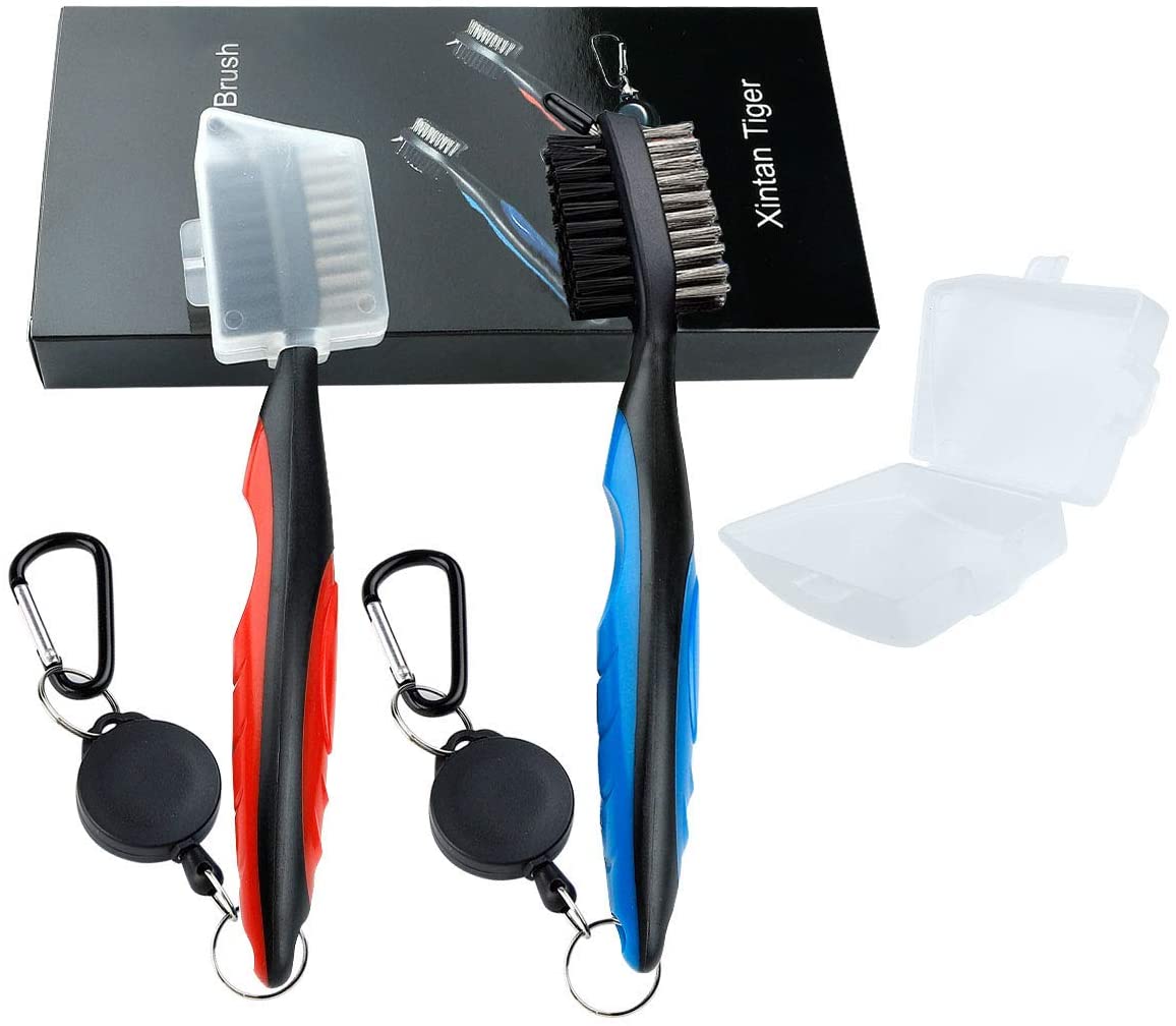 Pack of 2 Golf Club Brush Groove Cleaner with Retractable Zip-line and Aluminum Carabiner Cleaning Tools