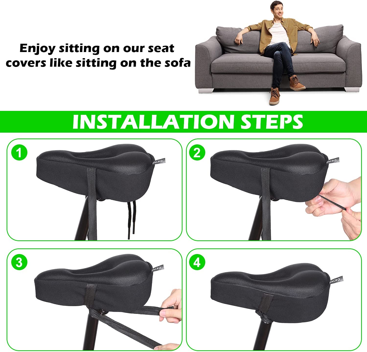 Zacro Bike Seat Cushion - Gel Padded Bike Seat Cover for Men Women Comfort, Extra Soft Exercise Bicycle Seat Compatible with Peloton, Outdoor & Indoor