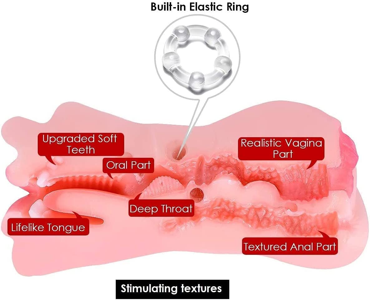 ZEMALIA 3 in 1 Male Masturbators Adult Sex Toys with Realistic Textured Mouth Vagina and Tight Anus, Men's Pocket Pussy Blowjob Stroker Anal Play Sex Toys for Men Masturbation