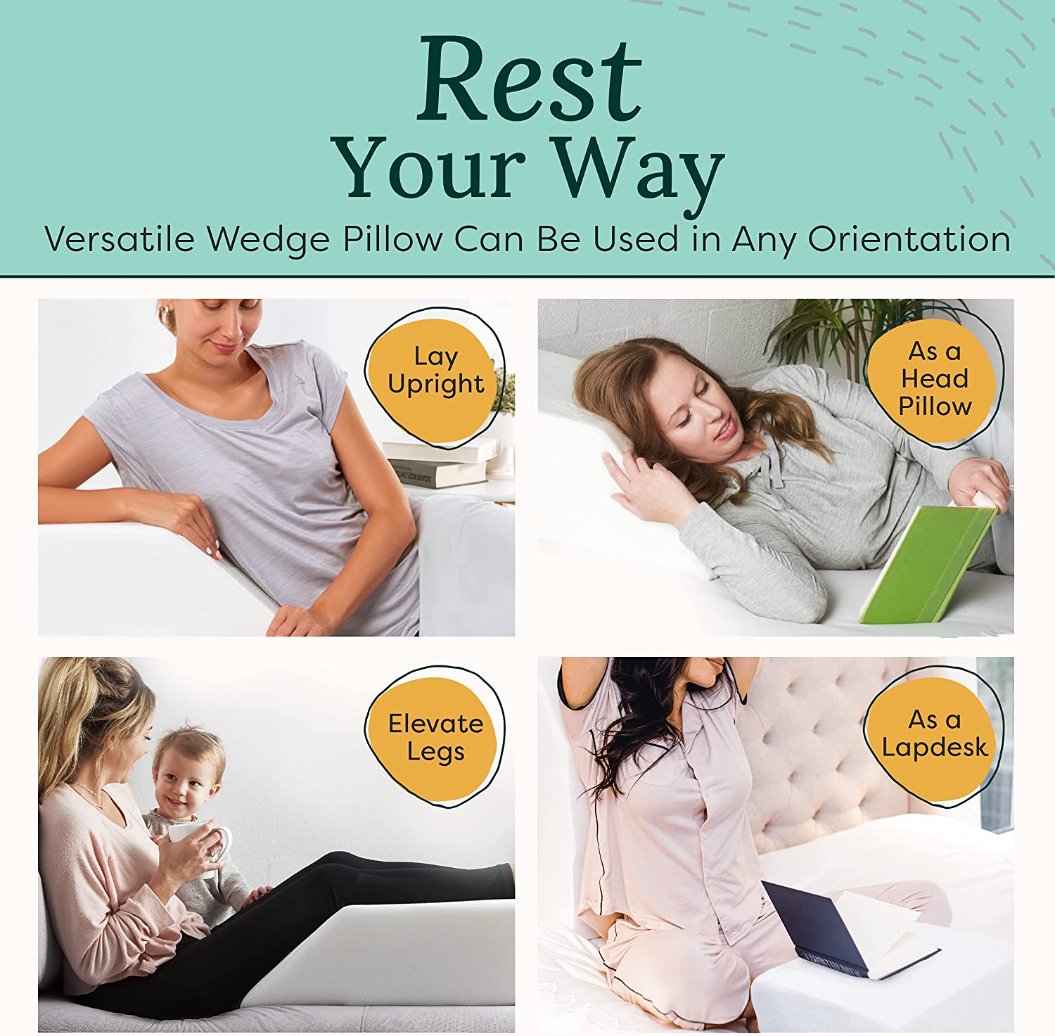 Zen Bamboo Wedge Pillows for Sleeping - Luxury Foam Leg Elevation Pillow for Leg & Back Discomfort w/ Removable Cover