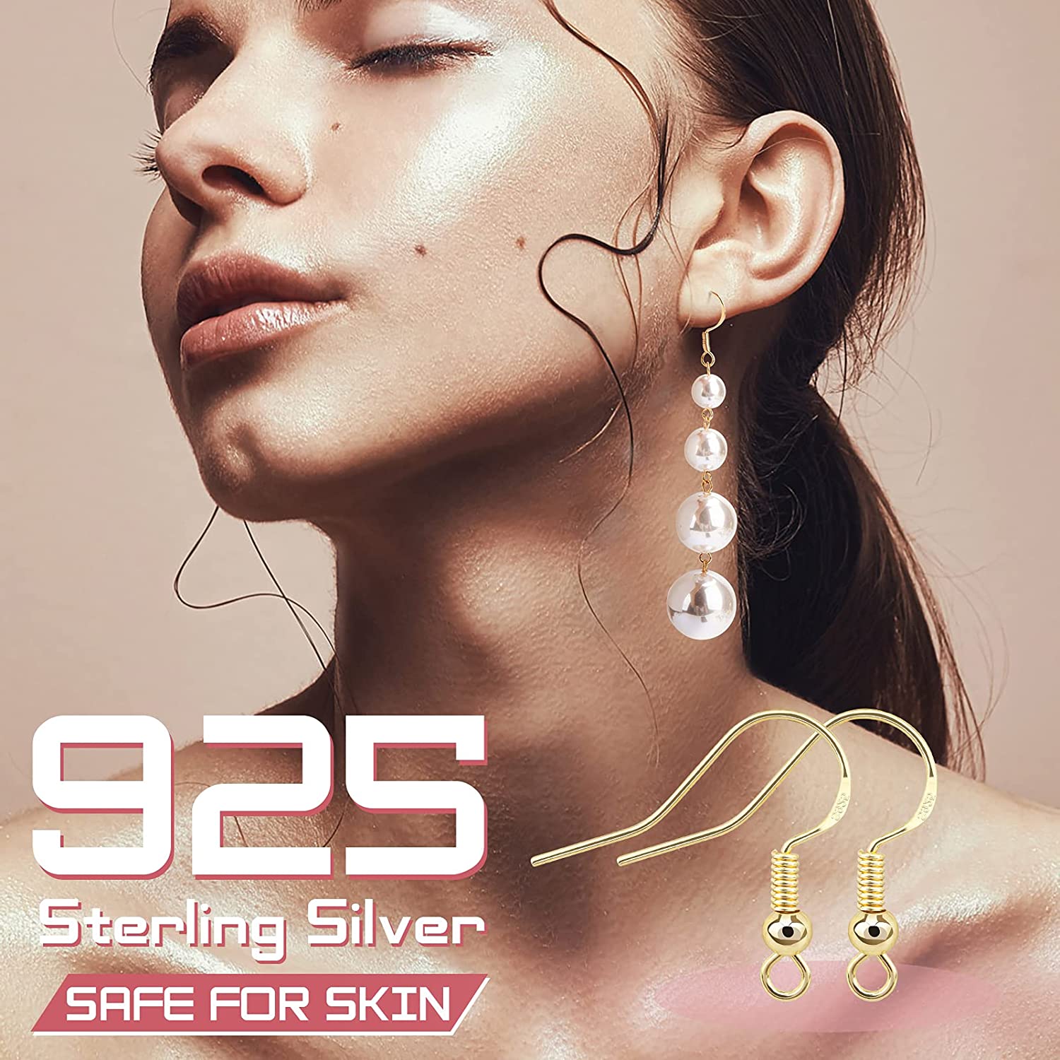 100 PCS/50 Pairs Earring Hooks, 925 Sterling Silver Hypoallergenic Earring Hooks for Jewelry Making, 300 PCS Upgraded Earring Making kit, Earring Making Supplies with Earring Backs and Jump Rings