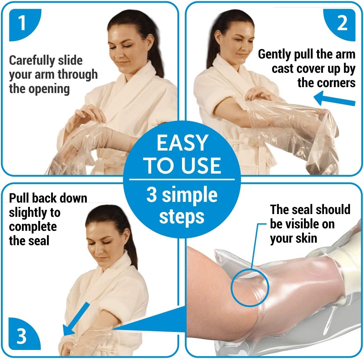 100% Waterproof Cast Cover Arm -【Watertight Seal】 - Reusable Adult Half Arm Cast Covers for Shower Elbow, Hand & Wrist - 3 Pack