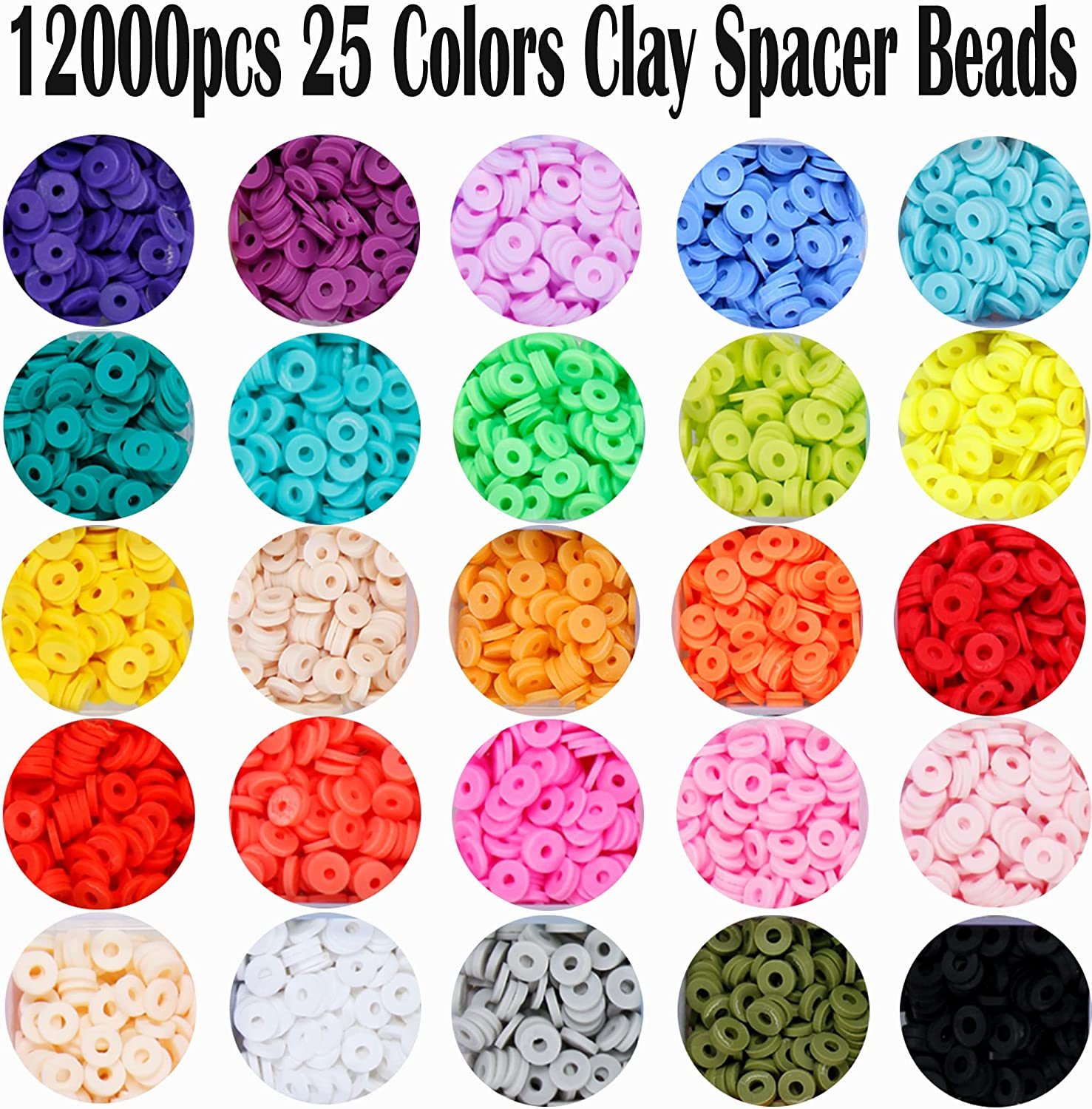 12000pcs 25 Colors Flat Clay Heishi Beads, Craft kit for Girls, Including200 Pcs Letter Beads Jump Rings 2 Roll Crystal Strings for DIY Jewelry Making Bracelets Necklace Earring Making Supplies