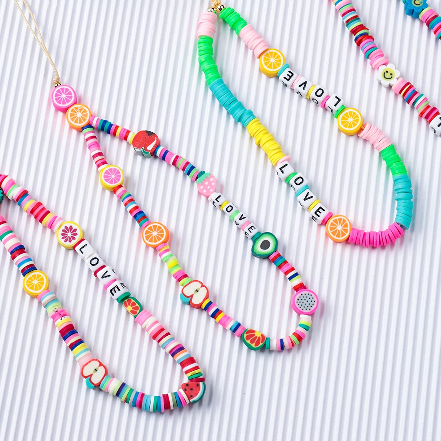 200pcs Mixed Fruit Spacer Beads Smiley Face Beads Color Polymer Clay Beads, for DIY Jewelry Bracelet Earring Necklace Craft Making Supplies