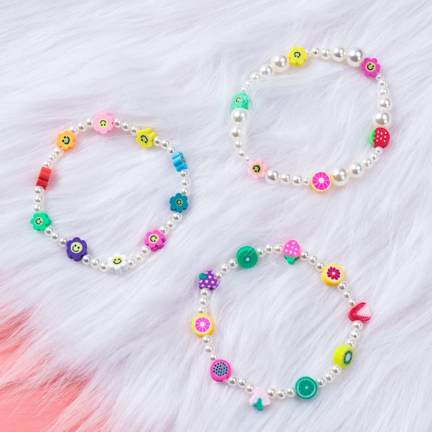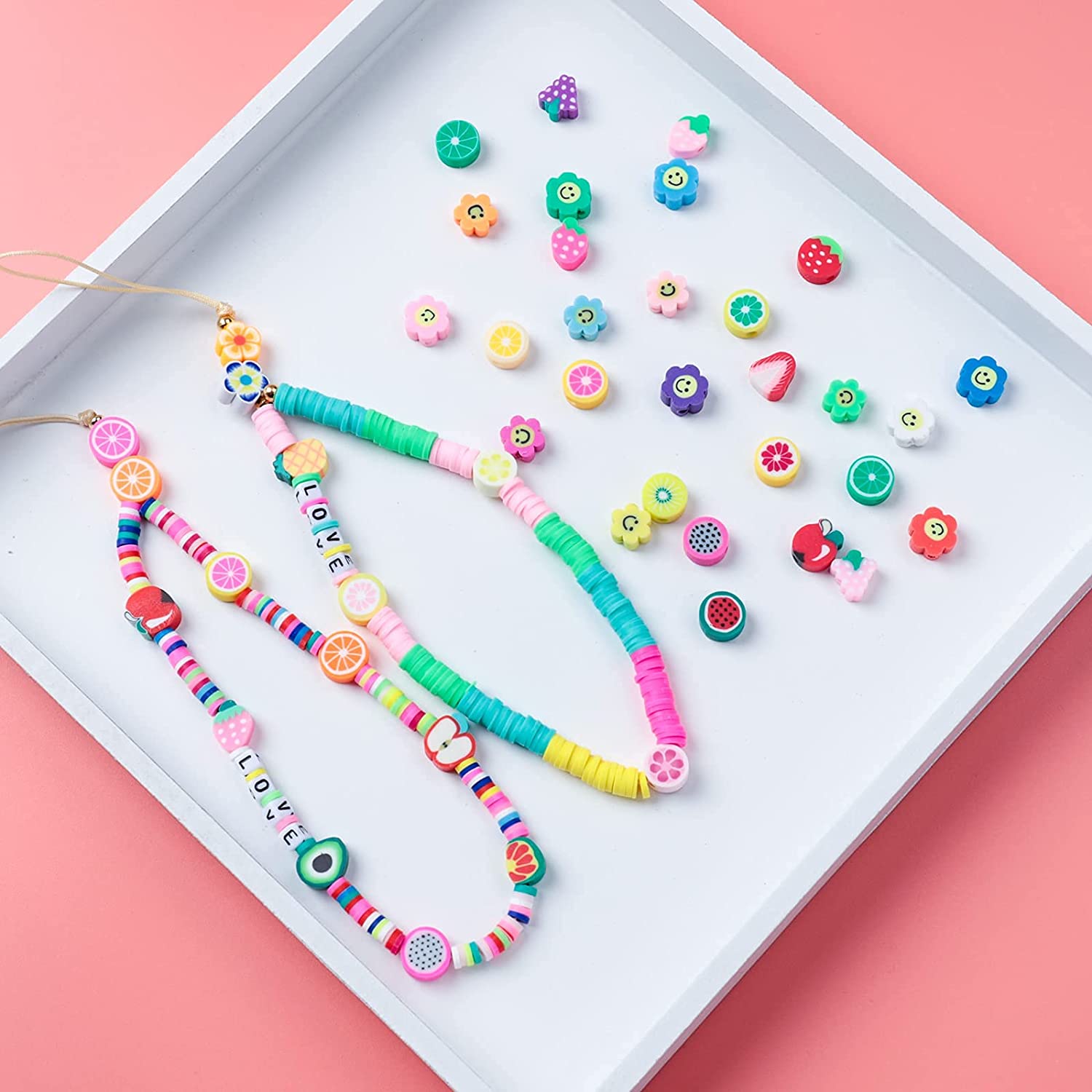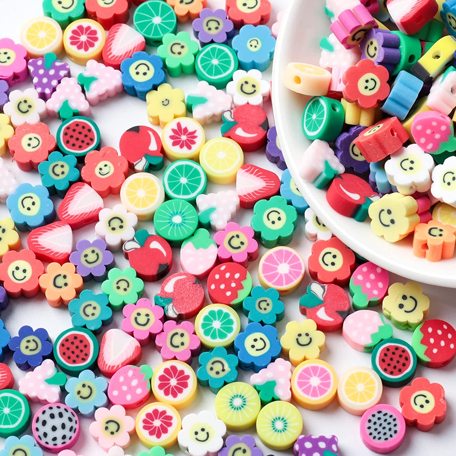 200pcs Mixed Fruit Spacer Beads Smiley Face Beads Color Polymer Clay Beads, for DIY Jewelry Bracelet Earring Necklace Craft Making Supplies