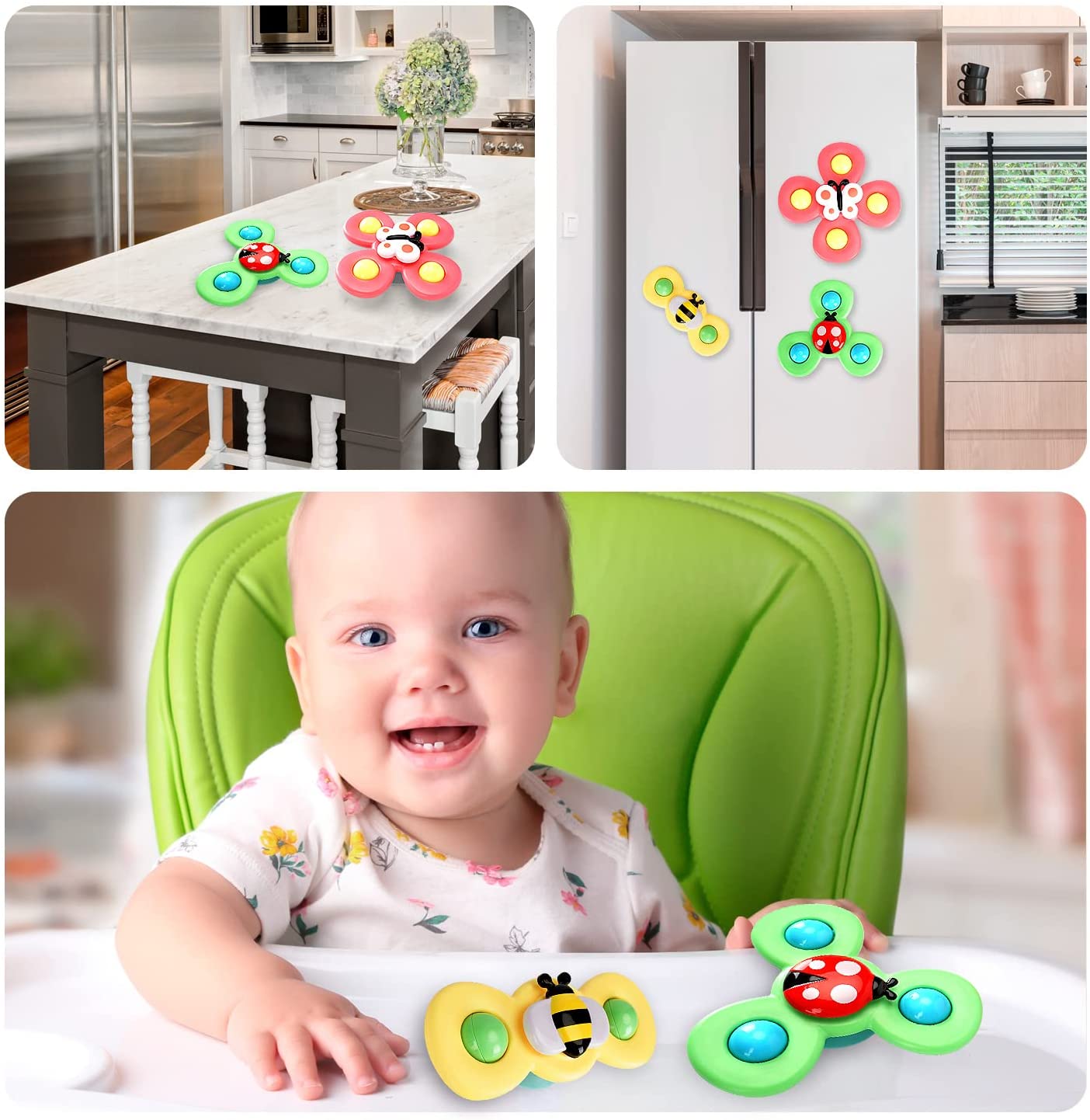 3PCS Suction cup spinner toys for 1 2 Year old boys|Spinning top baby toys 12-18 months|First birthday baby gifts for 1 Year old girls|Sensory toys for toddlers 1-3 (Farm)