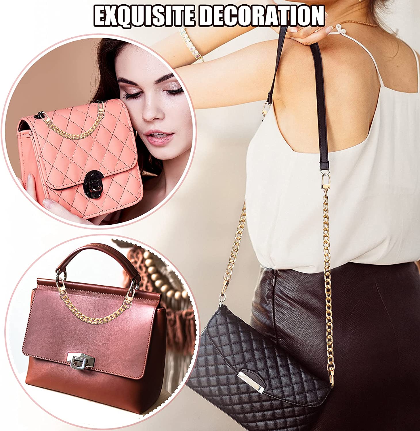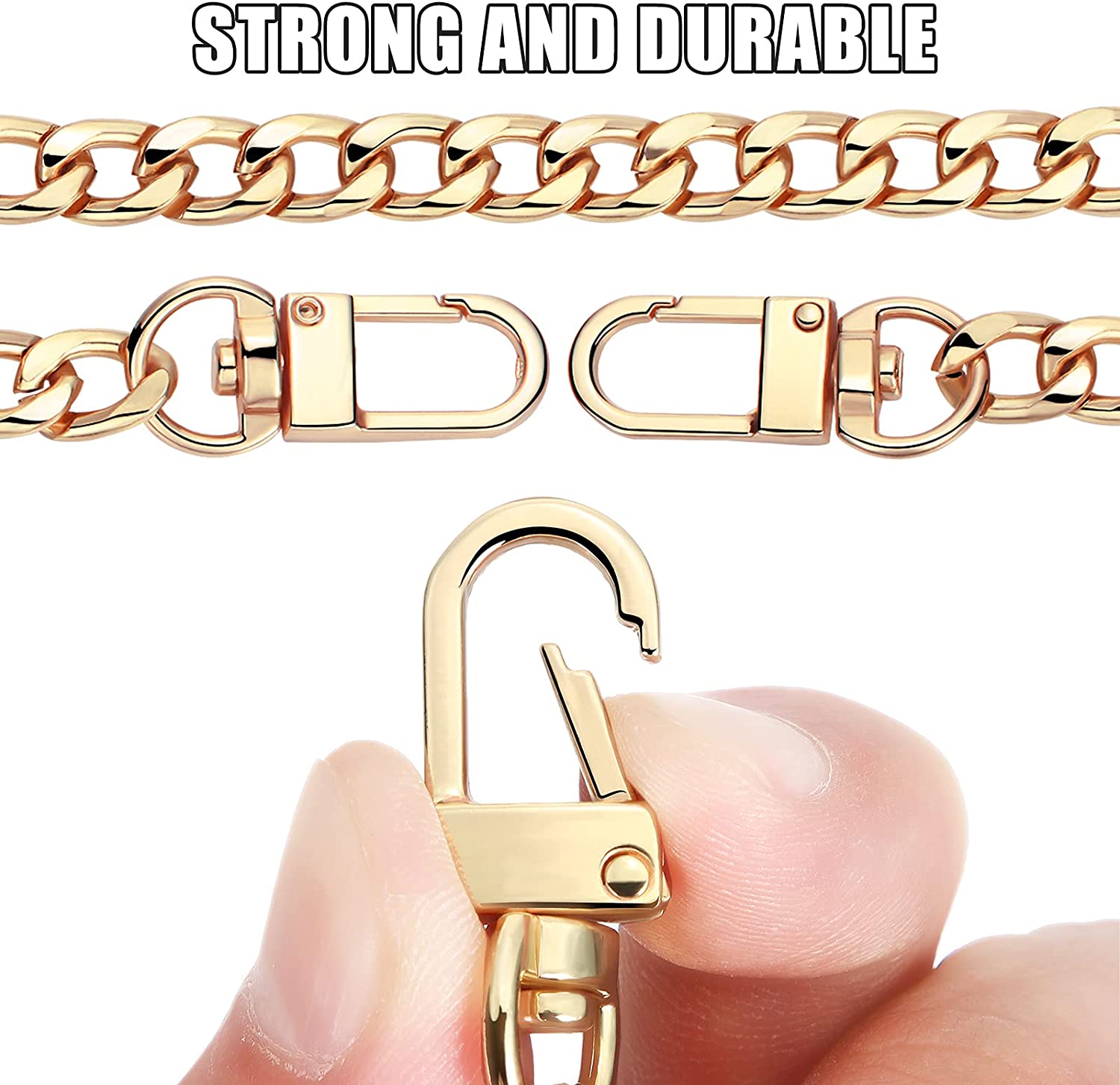4 Pieces Purse Chain Strap Purse Strap Extender DIY Flat Chain Strap Handle Bag Accessories Charms Decoration for Purse Handbags Shoulder Bag (Gold,7.9 Inch)