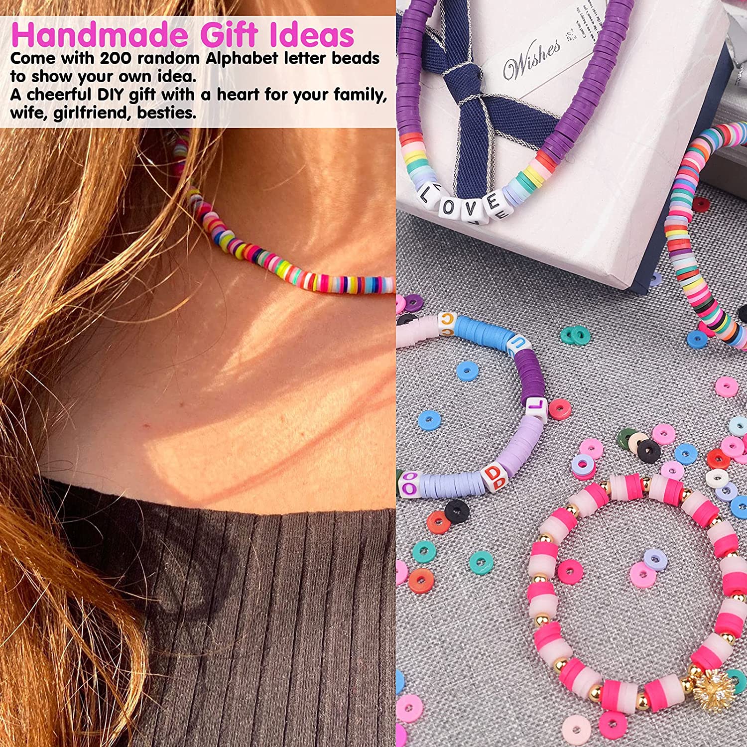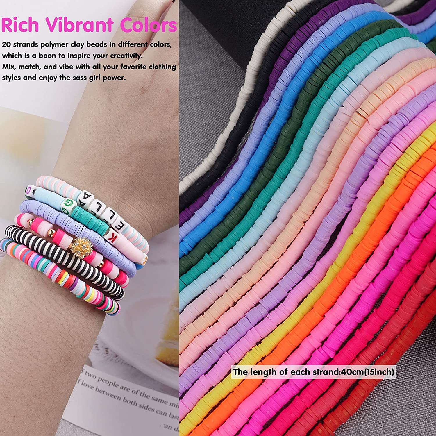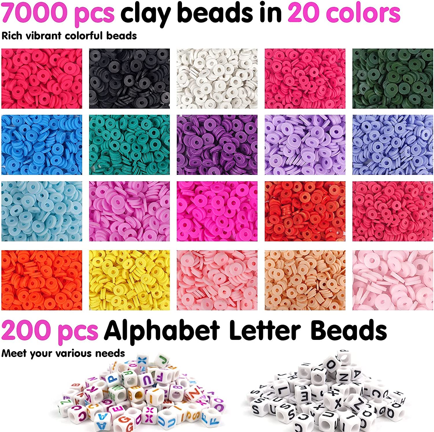 7200 Wholesale Clay Beads, Velavior 20 Strands Multi-Colored Flat Heishi Beads and Alphabet Letter Beads for Bracelet Making, Polymer Clay Beads Crafts Supplies for Jewelry Making Kit