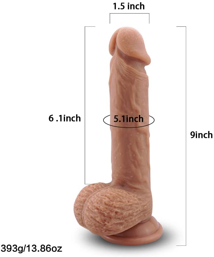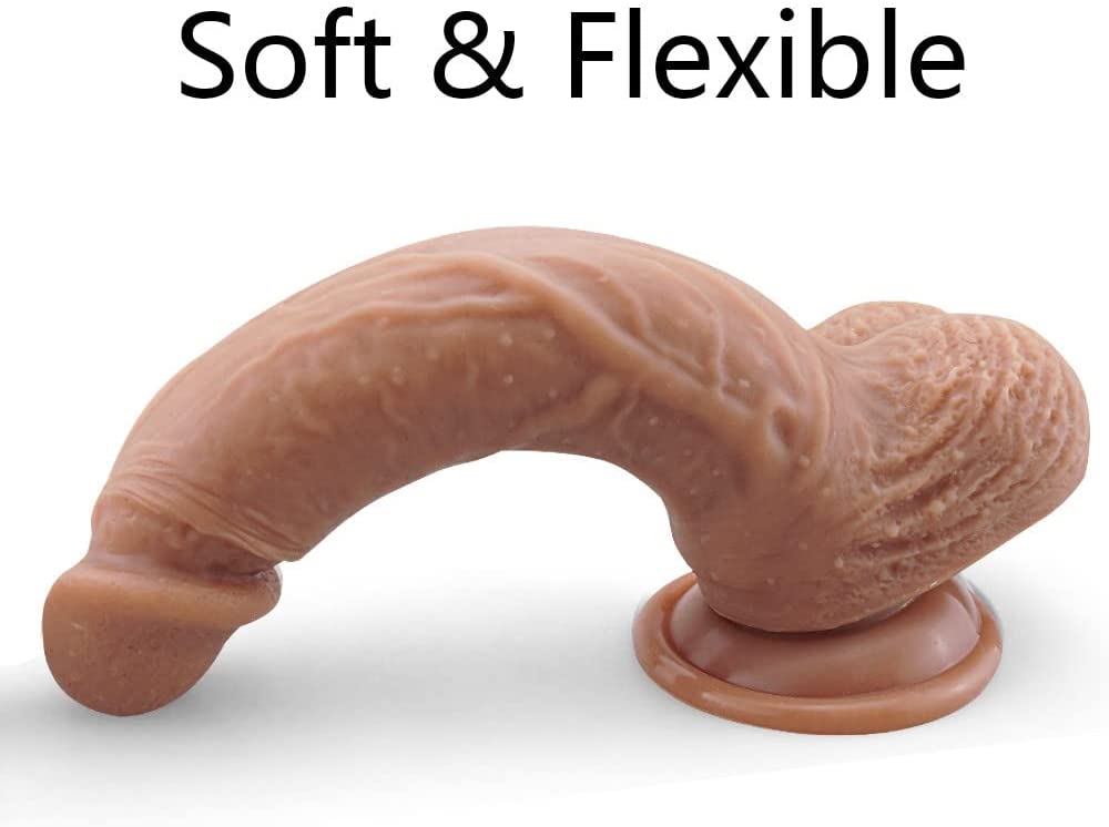 9 Inch Silicone Realistic Dildo Soft Large Dildos for Women with Strong Suction Cup for Hands-Free, Flexible Lifelike Sex Toy with Curved Shaft for Vaginal G-spot and Anal Used