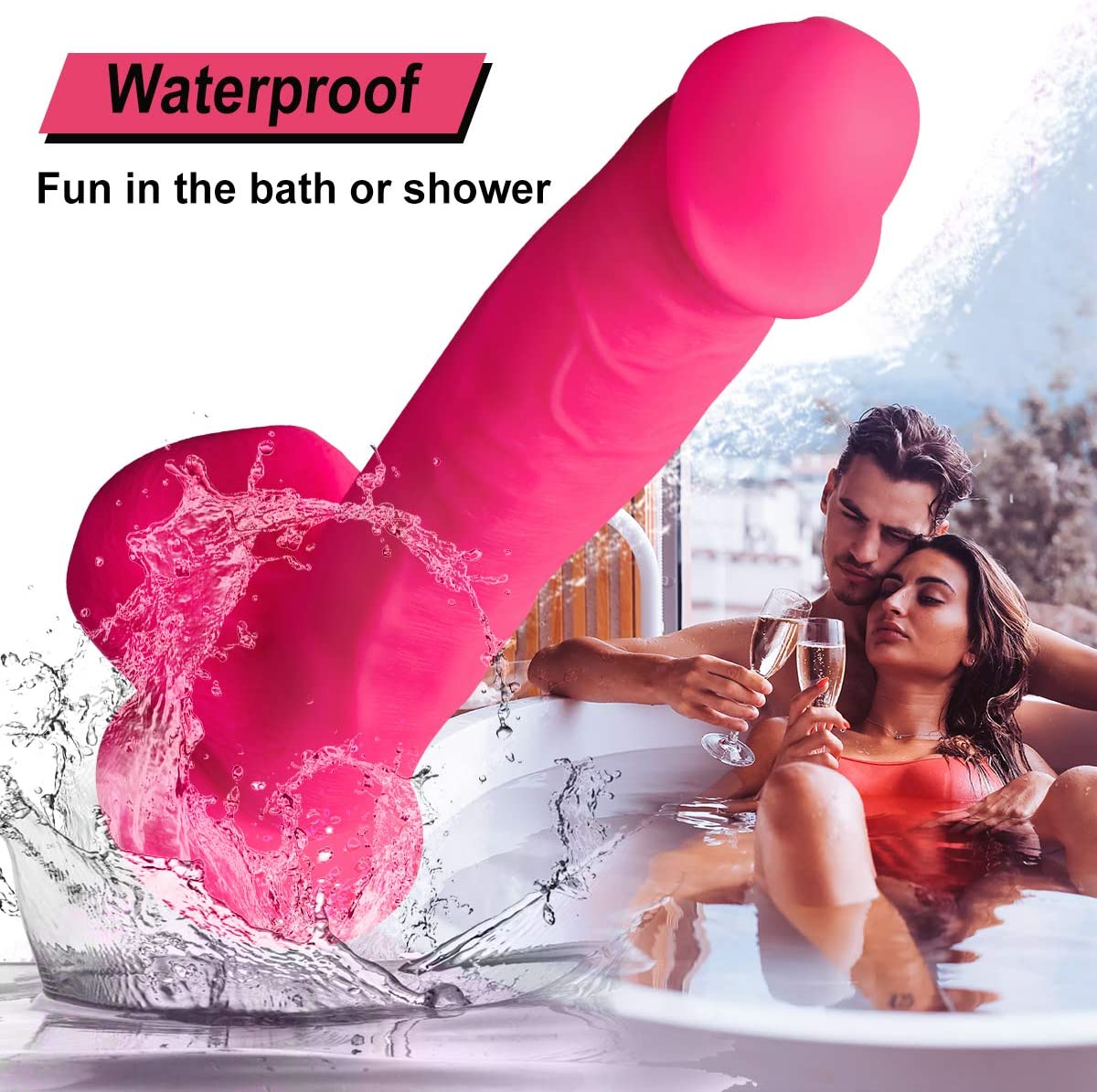 9.5 Inch Realistic Dildo, Dual Density Liquid Silicone Lifelike Penis with Strong Suction Cup for Hands-Free Play Flexible Cock Harness Strap-on Compatible Sex Toys for Vaginal and Anal Play (Pink)