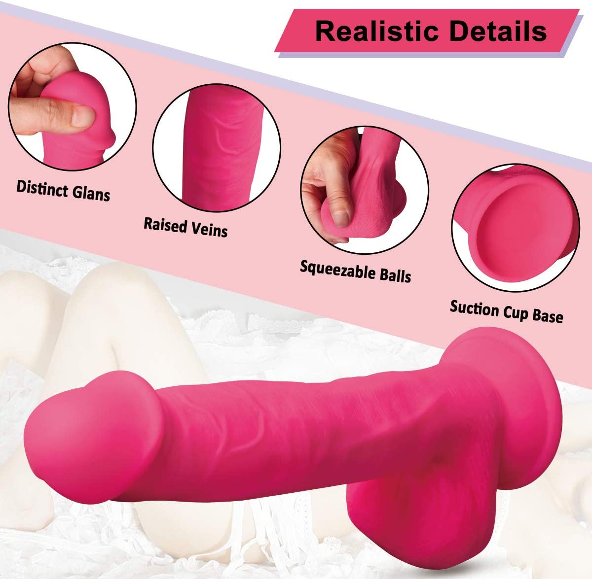 9.5 Inch Realistic Dildo, Dual Density Liquid Silicone Lifelike Penis with Strong Suction Cup for Hands-Free Play Flexible Cock Harness Strap-on Compatible Sex Toys for Vaginal and Anal Play (Pink)