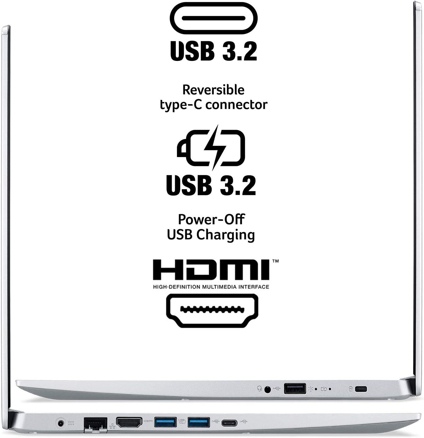 Acer Aspire 5 A515-45-R74Z comes with these high level specs: AMD Ryzen 5 5500U Hexa-Core Mobile Processor 2.1GHz with Precision Boost up to 4.0GHz (Up to 8MB L3 Cache), 15.6" Full HD (1920 x 1080) widescreen LED-backlit IPS Display, AMD Radeon Graphics, 8GB DDR4 On-Board Memory, 256GB NVMe SSD, 1 - Available Hard Drive Bay, True Harmony Technology, Two Built-in Stereo Speakers, Acer Purified.Voice Technology with Two Built-in Microphones, Intel Wireless Wi-Fi 6 AX200 802.11ax Dual-Band 2.4GHz and 5GHz featuring 2x2 MU-MIMO technology, 10/100/1000 Gigabit Ethernet LAN (RJ-45 port), Bluetooth 5.0, HD Webcam (1280 x 720), 1 - USB 3.2 (Type-C) Gen 1 port (up to 5 Gbps), 2 - USB 3.2 Gen 1 Ports (one with Power-off Charging), 1 - USB 2.0 Port, 1 - HDMI 2.0 Port with HDCP support, Backlit Keyboard, Lithium-Ion Battery, Up to 11-hours Battery Life, Windows 11 Home, 3.88 lbs. | 1.76 kg (system unit only) (NX.A84AA.005).