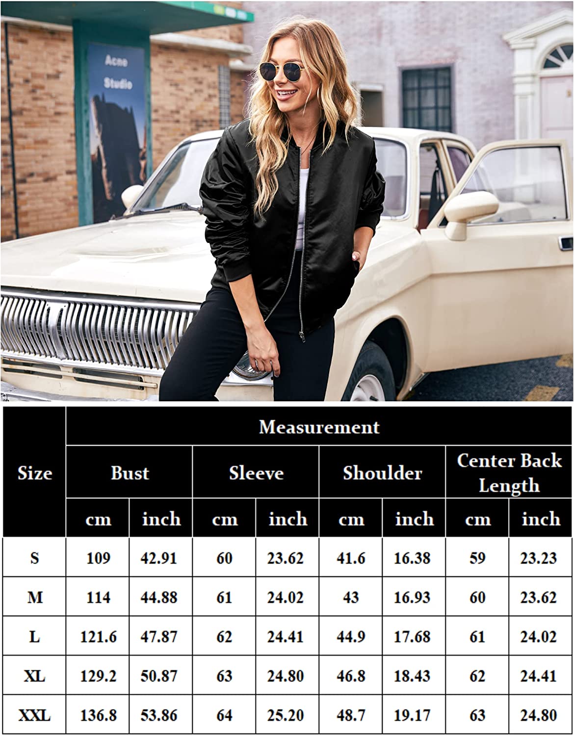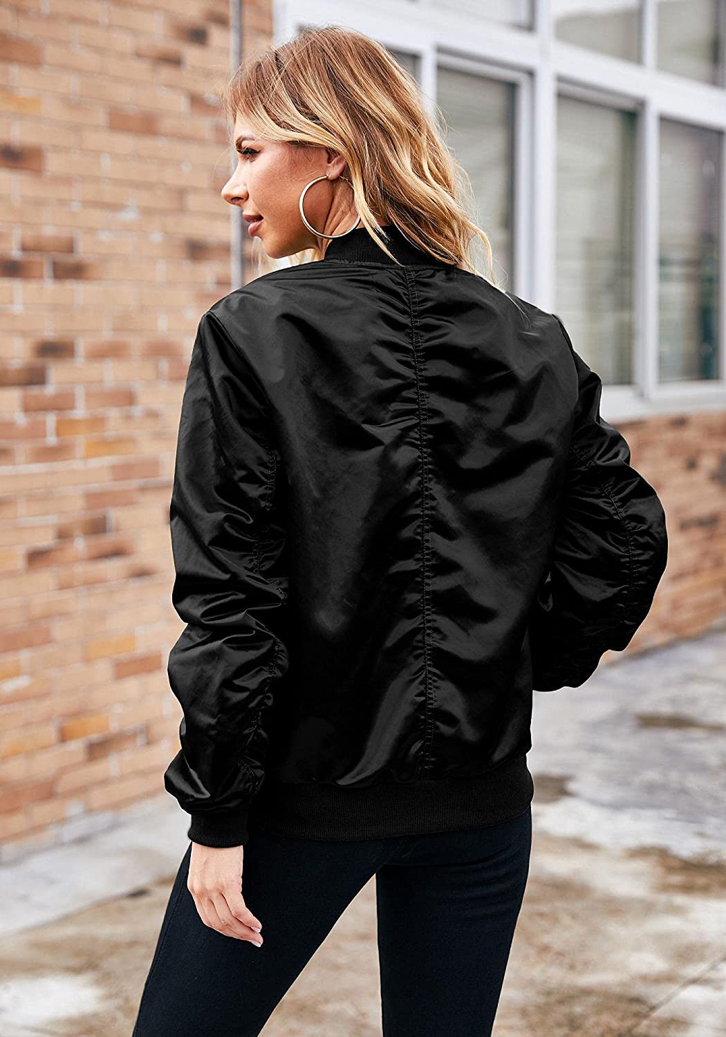 ACEVOG Women Fashion Satin Bomber Jacket Zip Up Casual Jacket Coat with Pocket Outfit