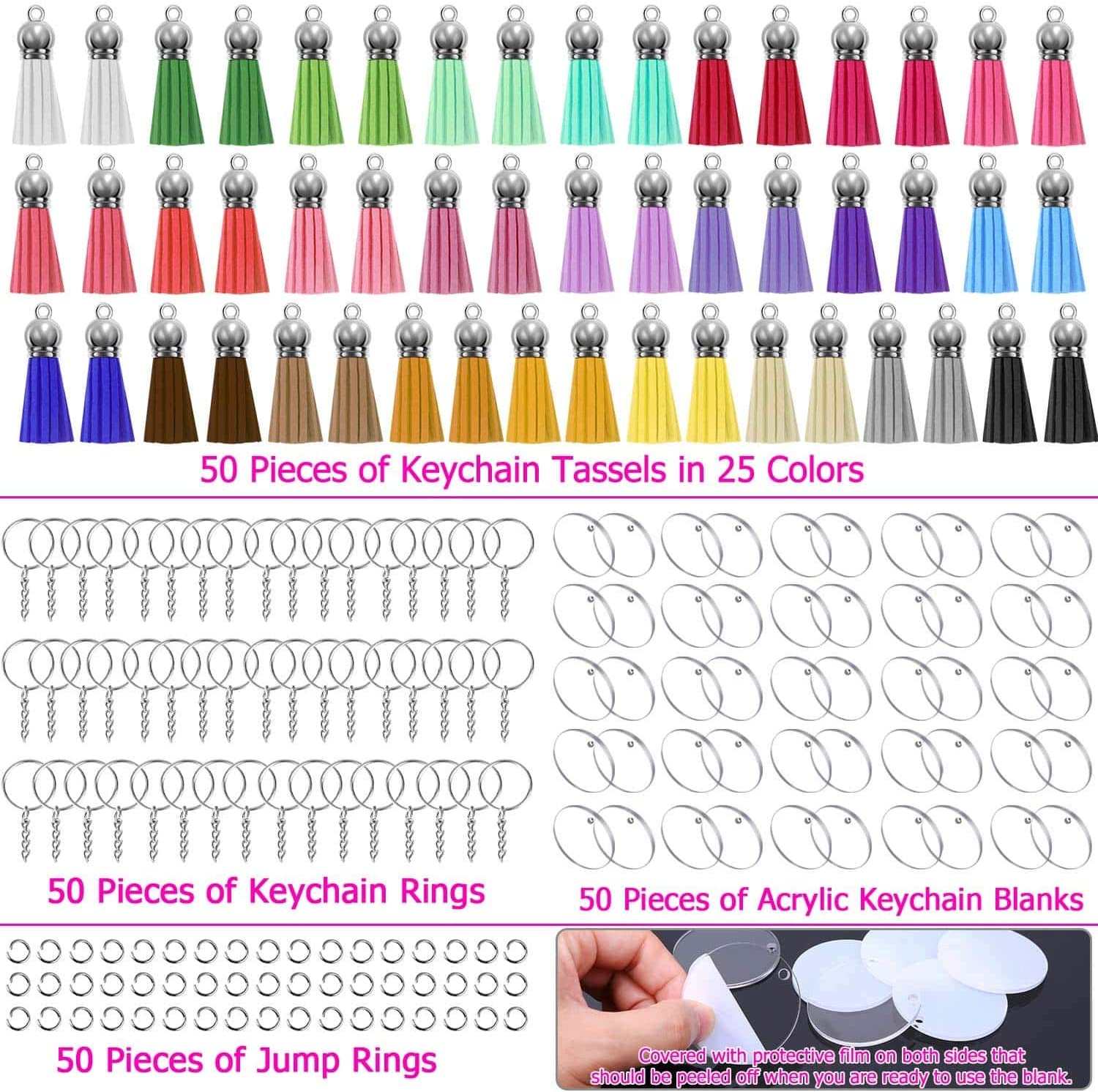 Acrylic Blank Keychains, Shynek 200 Pcs Clear Keychain Blanks for Vinyl with 50 Pcs Acrylic Blanks, 50 Pcs Keychain Tassels, 50 Pcs Key Rings with Chain and 50 Pcs Jump Rings