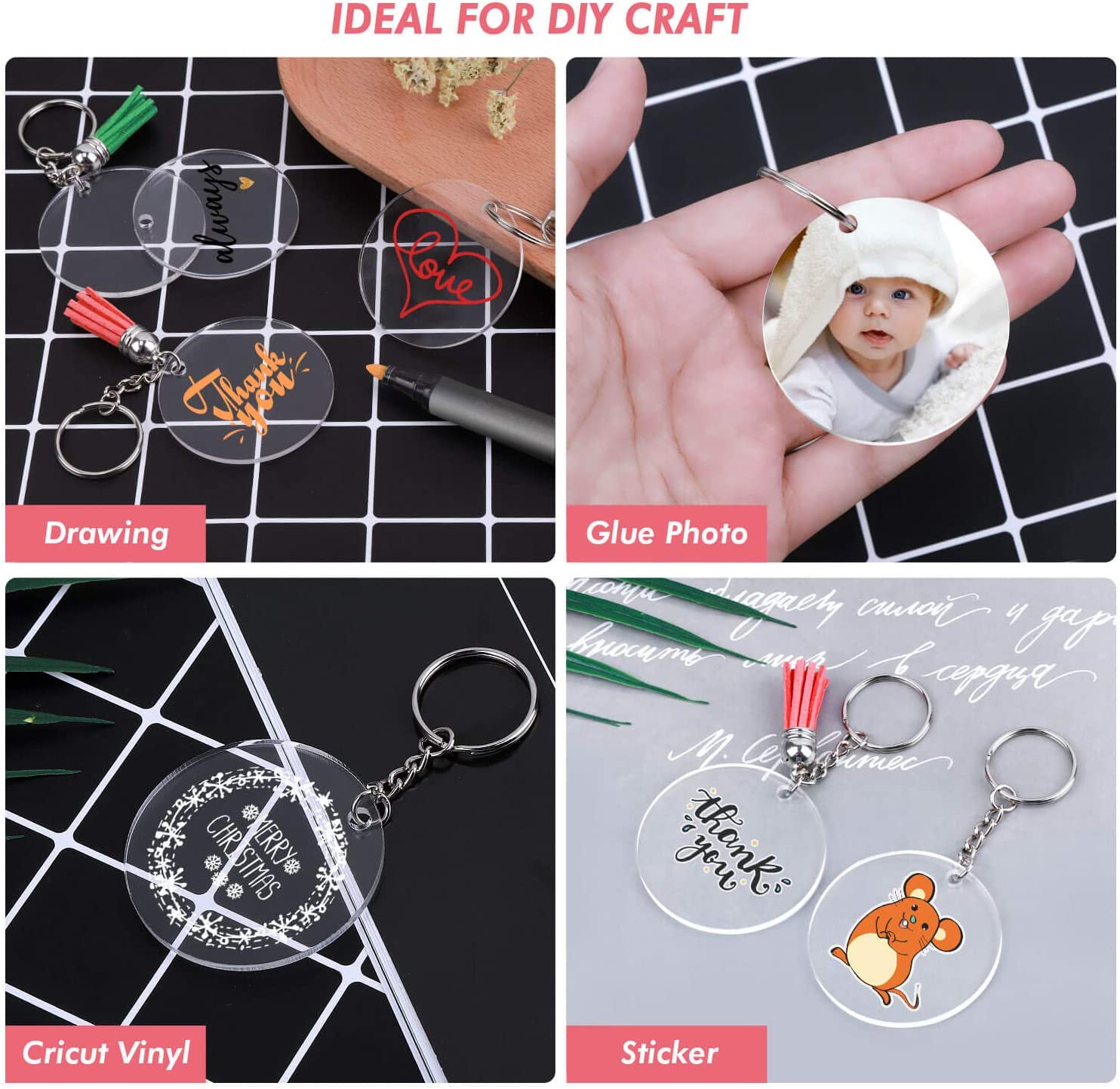 Acrylic Keychain Blanks, Audab 50pcs Clear Keychains for Vinyl, Acrylic Transparent Circle Discs Acrylic Blanks Keychain Bulk for DIY Keychain, Crafting and Vinyl Projects
