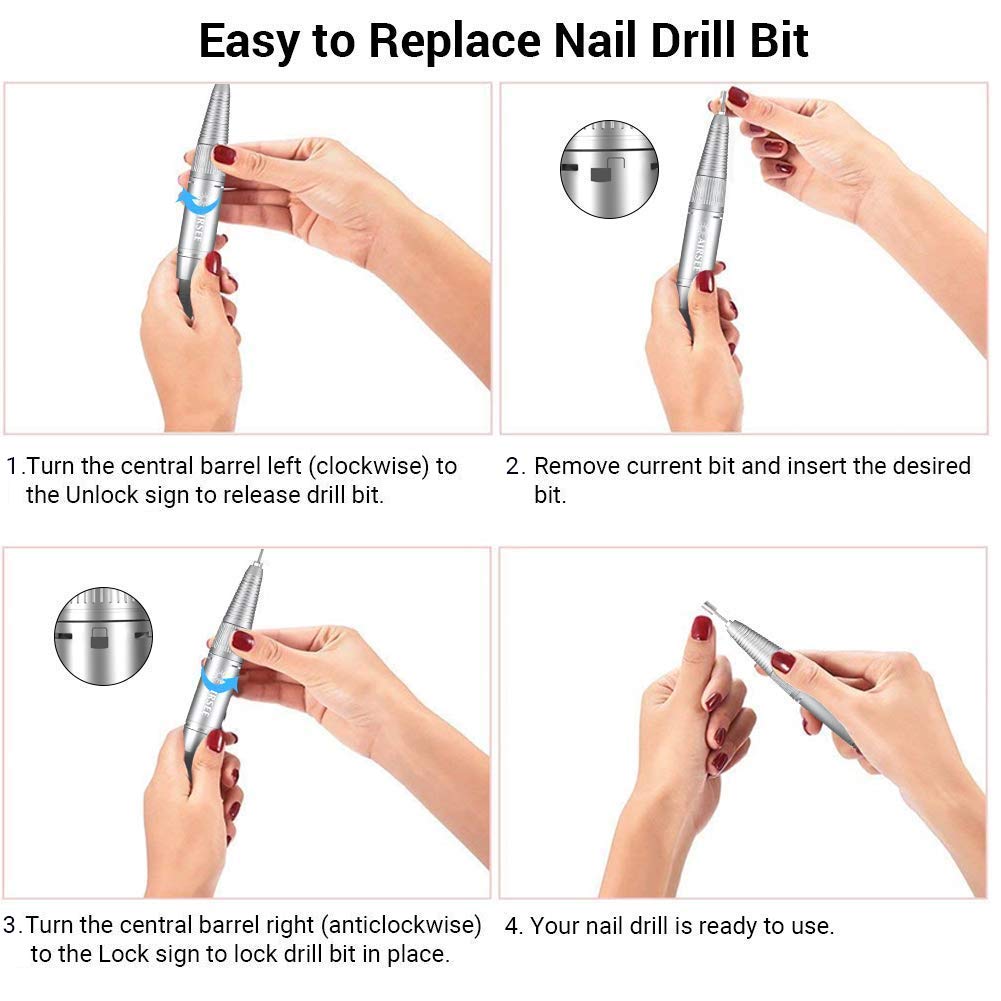 AIRSEE Rechargeable 30000RPM Electric Nail Drill Professional Portable E File Machine for Acrylic Nails Natural Extension Gel Nails Polish Cuticle, Cordless High Speed for Salon Use or Home DIY White