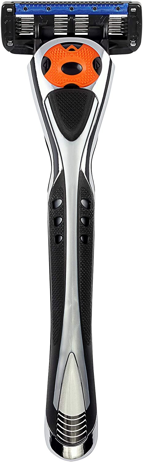 Solimo 5-Blade MotionSphere Razor for Men features a multi pivot design to follow the contours of your face and a beard trimmer for shaving goatee, sideburns and under nose. The razor cartridge is hypoallergenic, includes a lubricating strip with vitamin E, and has an anti-clog design for quick rinse. To load refill cartridge, push razor handle into a cartridge as it sits in the dispenser until it clicks. Cartridges fit Solimo Razor Handles only; does not fit other brands.