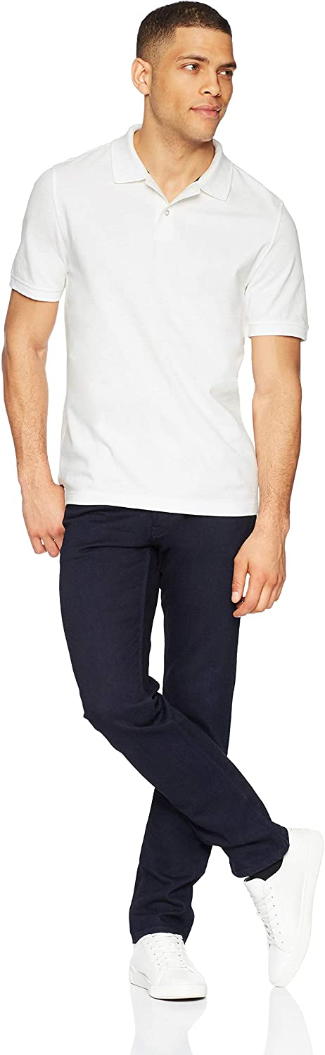 An Amazon brand - This slim-fit short-sleeve polo is made with comfortable pique fabric, a double-button placket, and ribbed cuffs for a classic look that never goes out of style