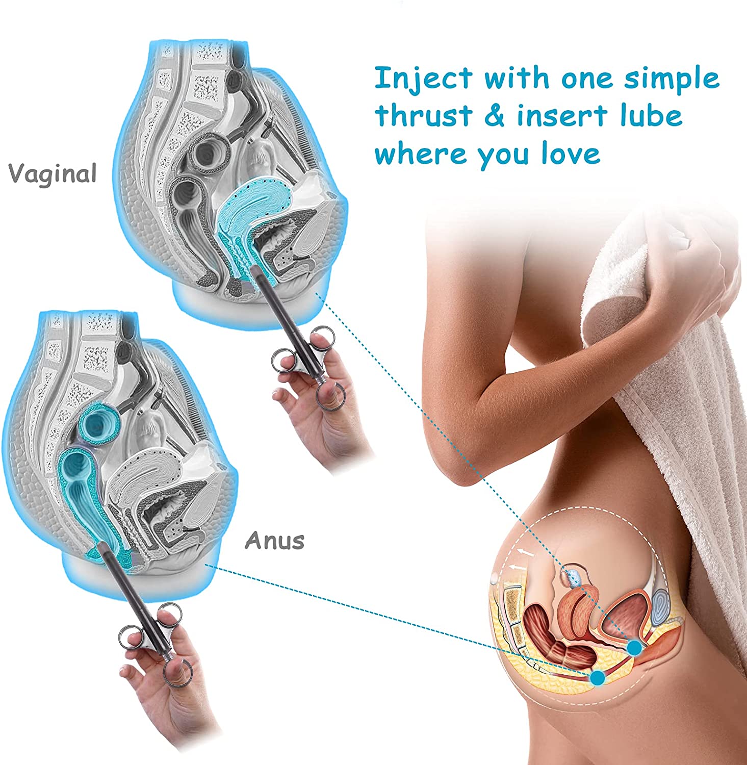 ANGCURE Lube Applicator Syringes, Lubricant Tube Shooter with Smooth Rounded Cap for Men, Women & Couples, Reusable, Easy Use & Clean [10ml Scales][Gray & Gray]