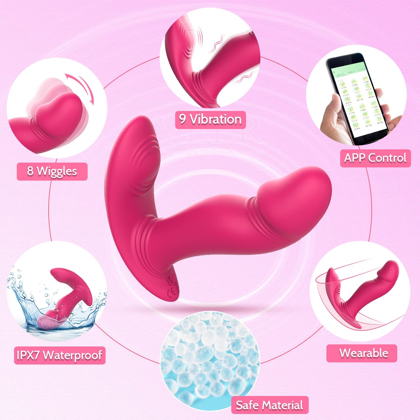 App Control Vibrating & Wiggling Wearable Clitoral G Spot Vibrator for Women, Banenu Perfect-Fitted Butterfly Vibrator, Audio Video Call Interaction, Rechargeable Rose Toy Vibrator for Women, Sex Toys