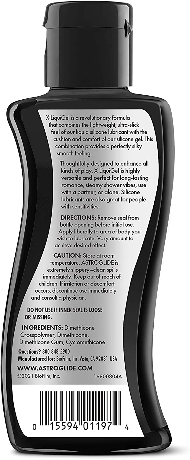 Astroglide X LiquiGel is a revolutionary formula that combines the lightweight, ultra-slick feel of our liquid silicone with the cushion, comfort and control of our silicone gel. Thoughtfully designed to enhance all kinds of play, Astroglide X LiquiGel is highly versatile and perfect for long-lasting romance and steamy shower vibes. Use with a partner or alone. Silicone lubricants are also great for people with sensitivities.