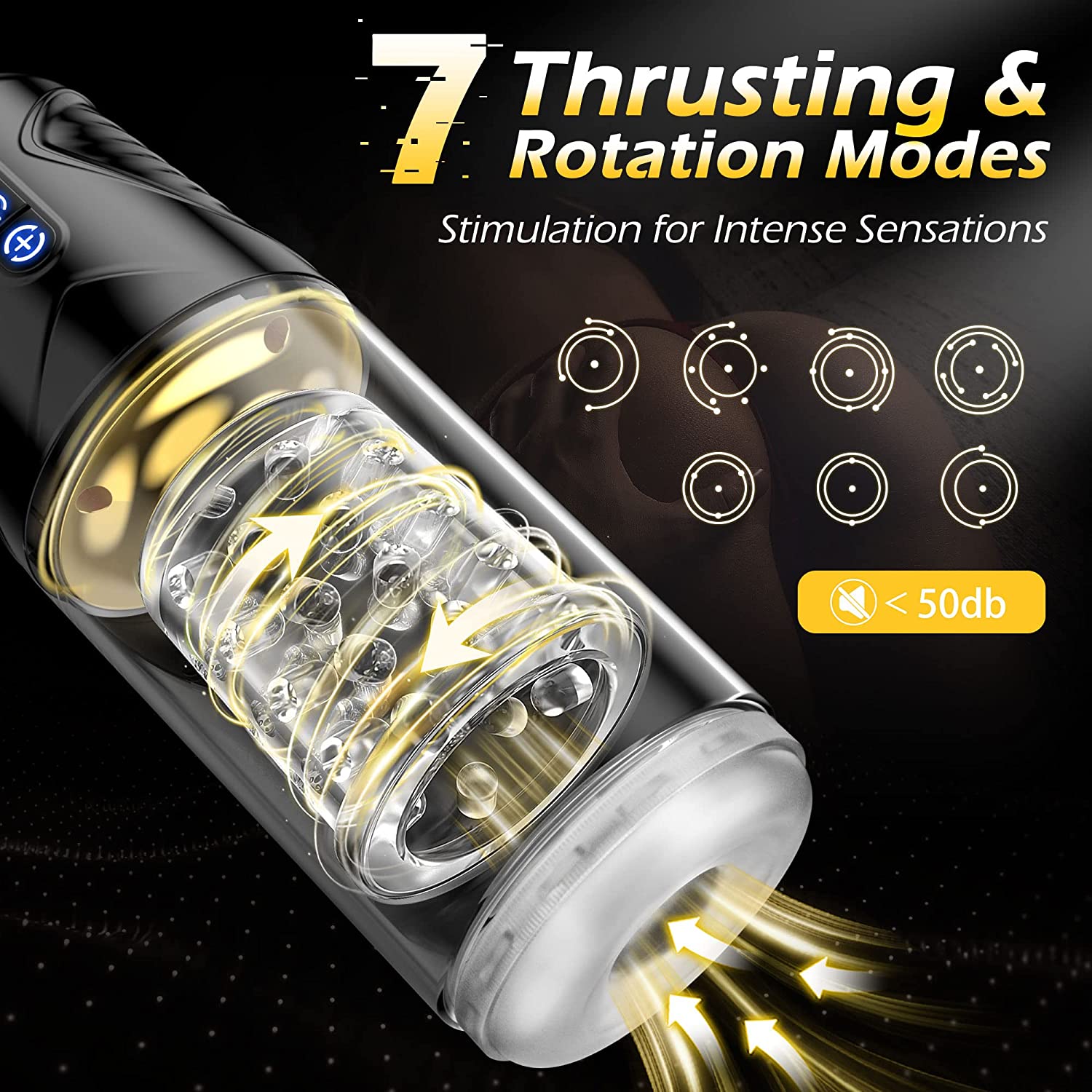 Automatic Male Masturbator, Amortoy Male Masturbators Cup with 7 Thrusting & Rotating, 50dB Super Quite Hands-Free Electric Pocket Pussy, Realistic TPE Vagina Blowjob Stroker, Male Sex Toys for Men