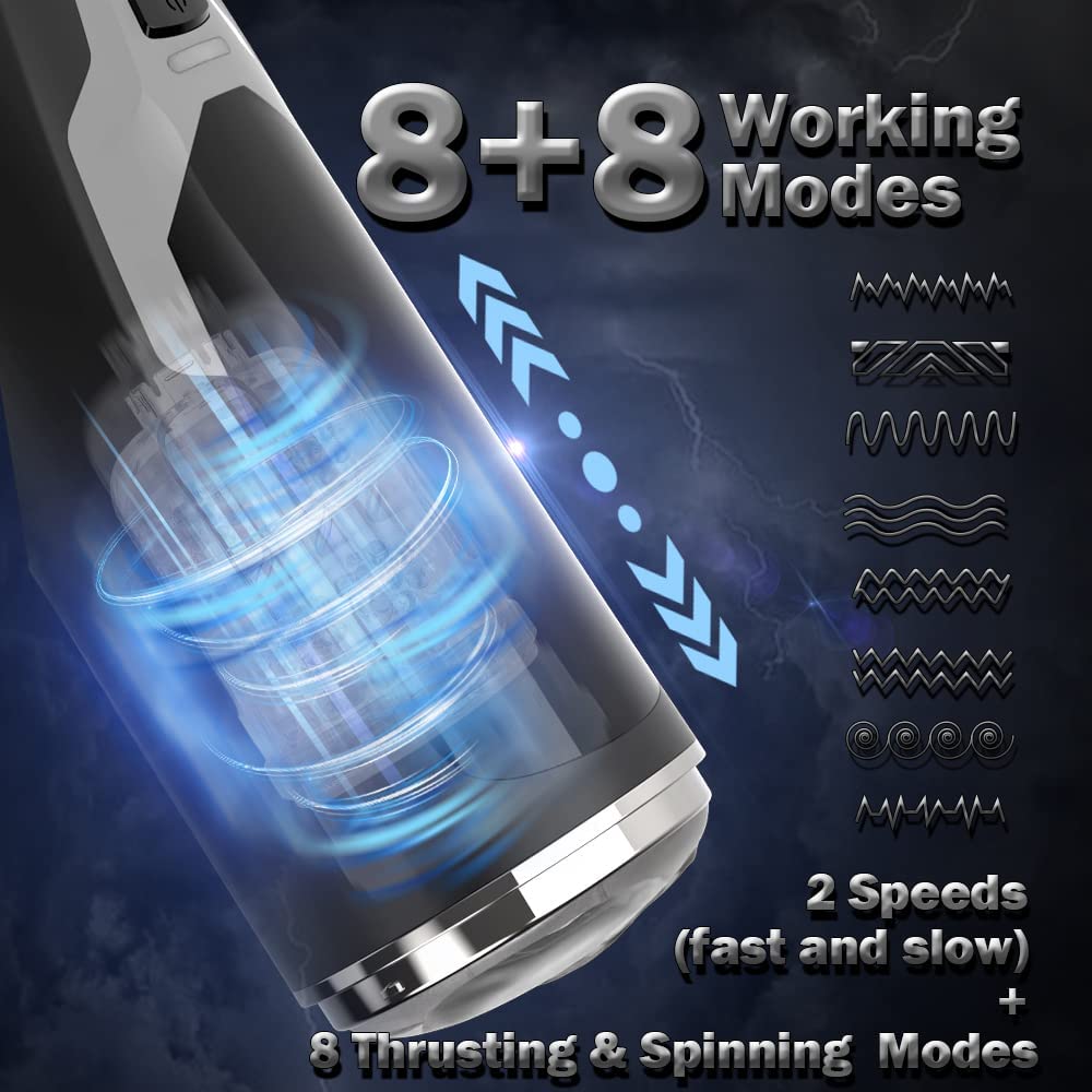 Automatic Male Masturbator, Thrusting Masturbator Cup with 8+8 Thrusting & Rotating Modes for Penis Stimulation, Electric Sex Toy Pocket Pussy Blowjob Stroker for Adults Sex Toy with Earphone
