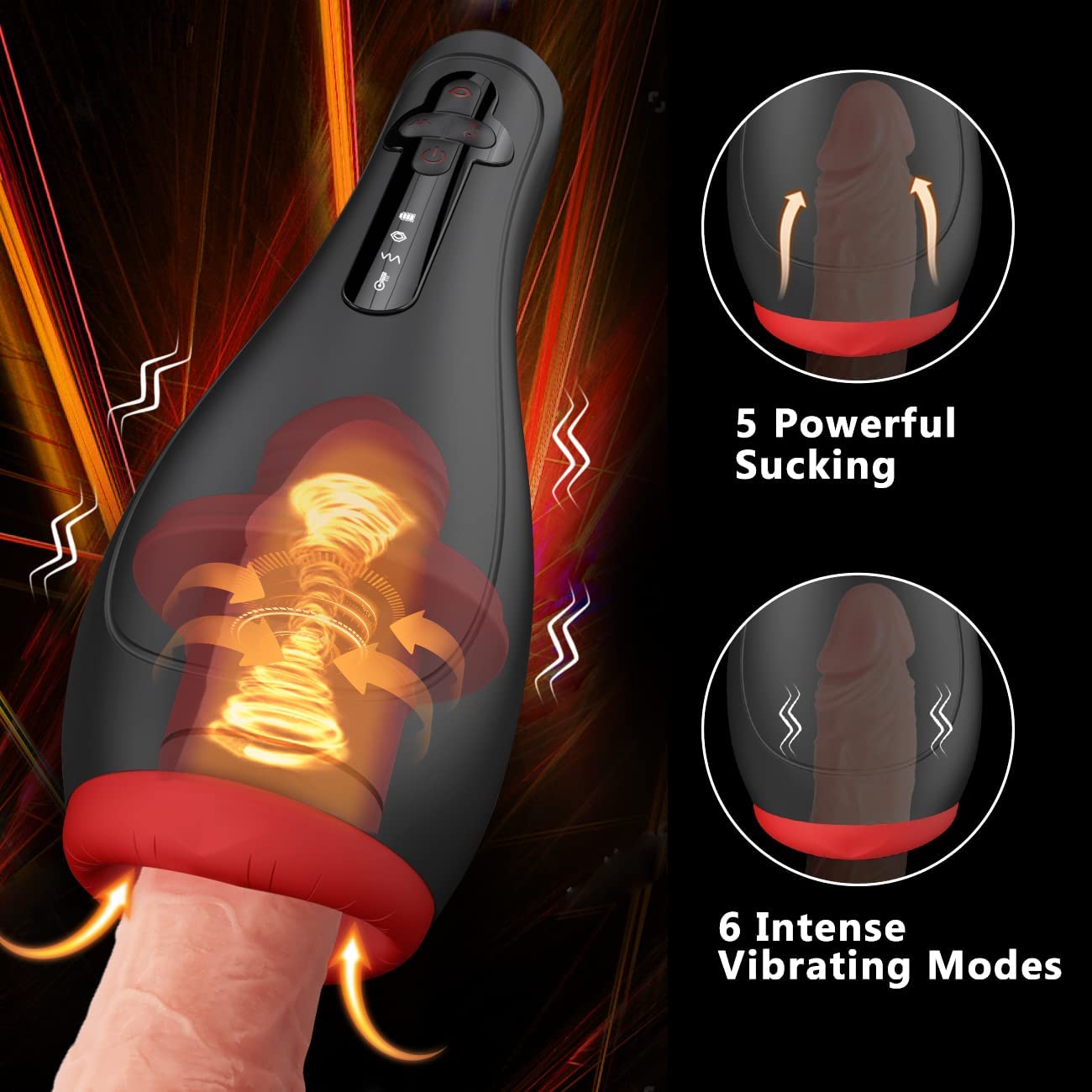 Automatic Sucking Male Masturbators Blowjob Machine with Led Display Screen 5 Suctions & 6 Vibrations, Heating Full Silicone Wrap Sex Toys for Men Masturbation with Pocket Pussy Stroker