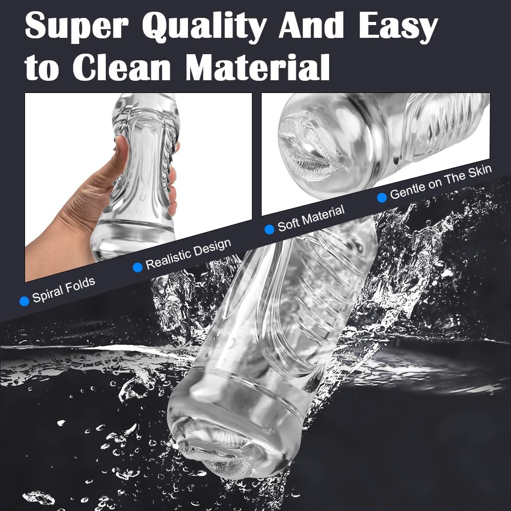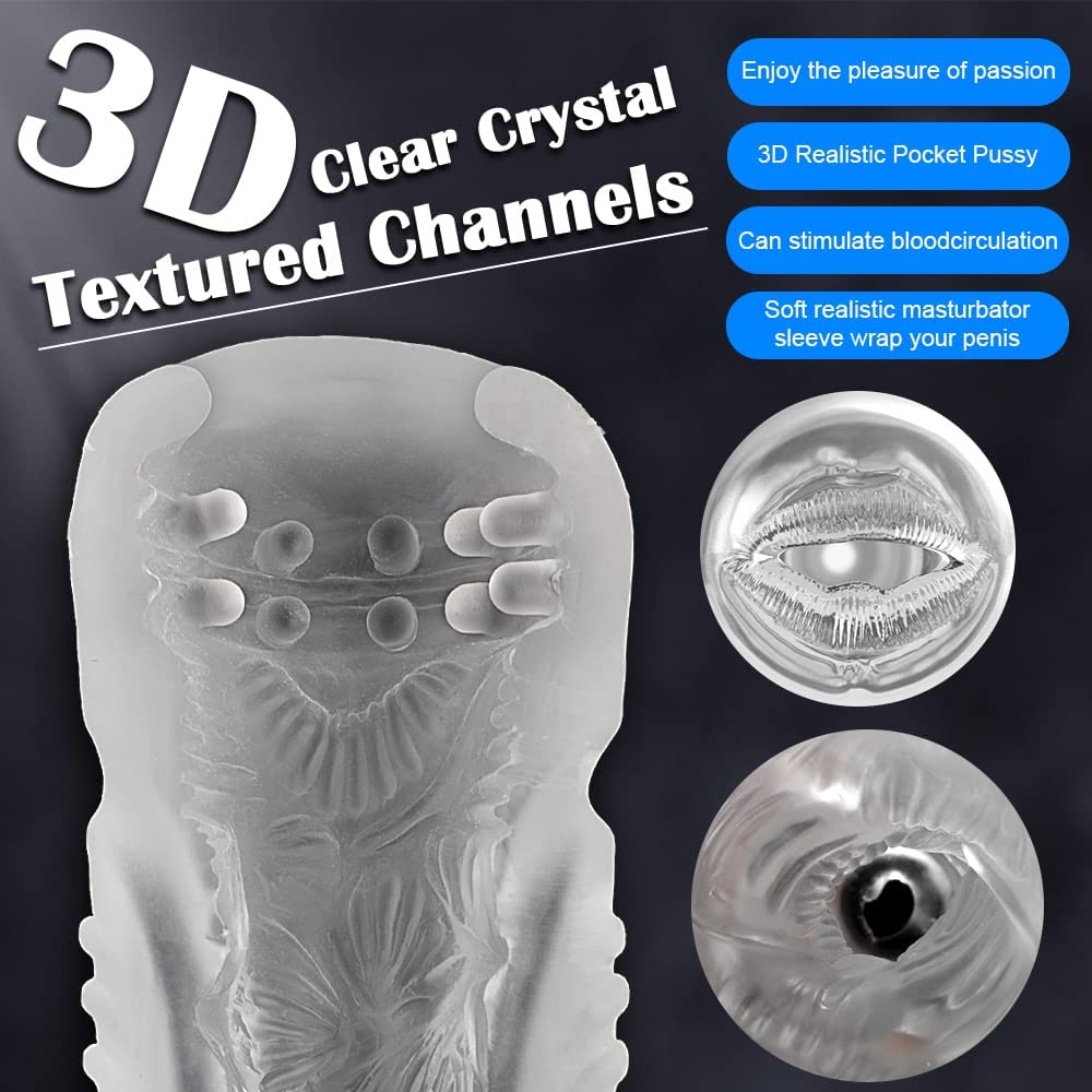 Automatic Sucking Male Masturbators with 7 Vibration & Suction Modes,Transparent Male Stroker Blowjob Stimulation Sex Toy,Realistic Vibrating Elastic Masturbator with Clear 3D Textured Tight Vaginal